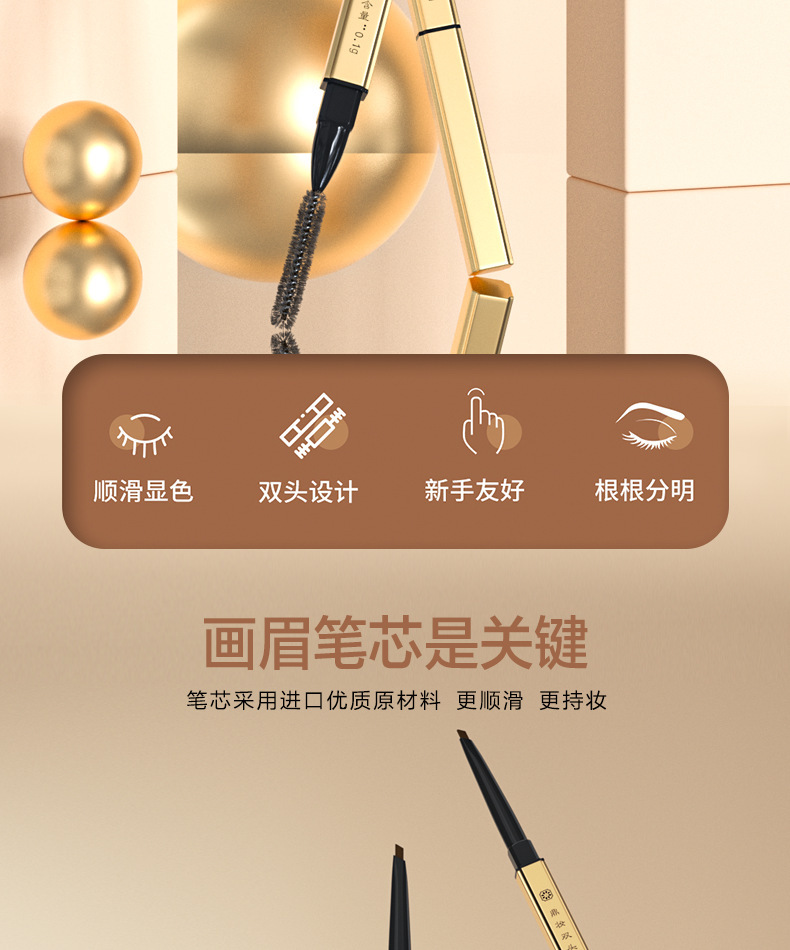 小金条眉笔双头持久防汗防水不晕染极细野生眉