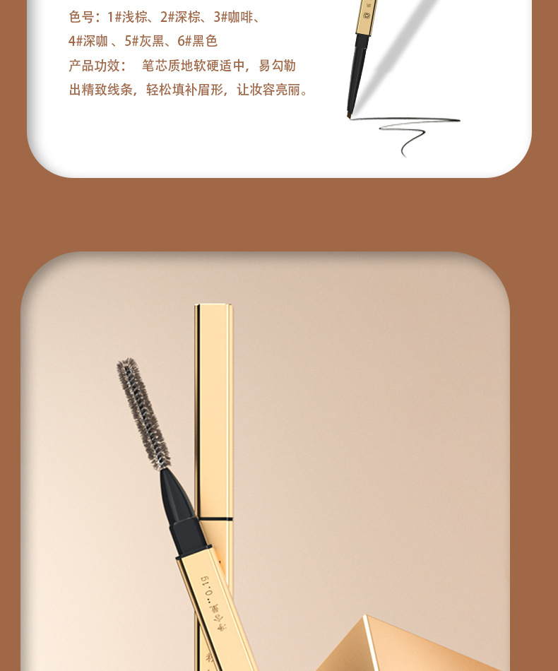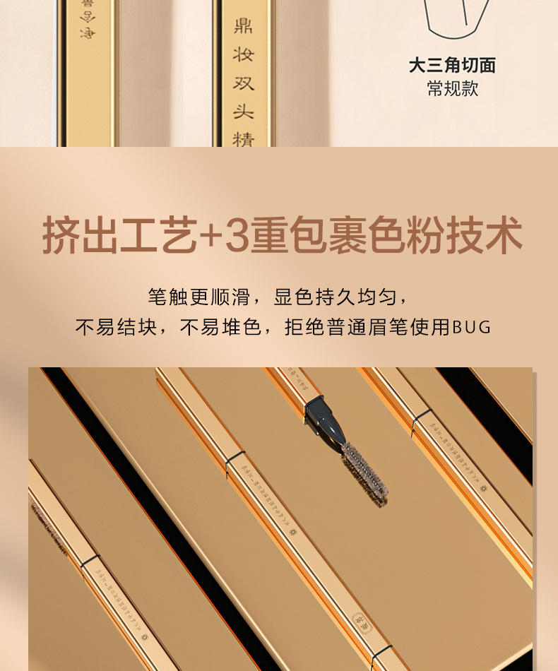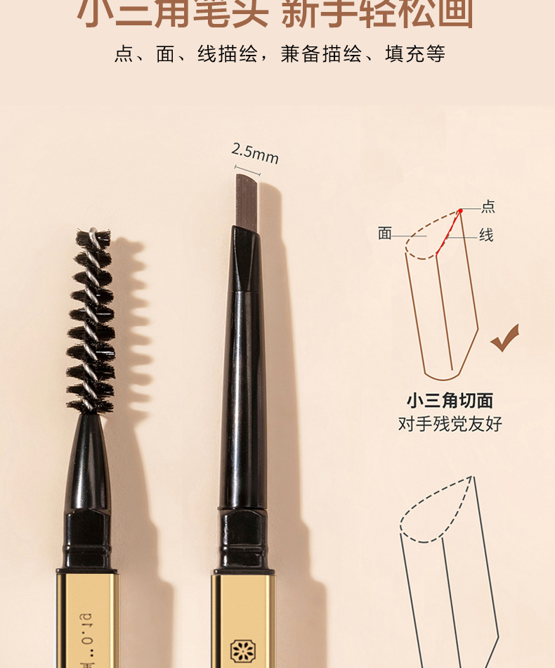 彩妆自然塑形砍刀眉笔易上色立体根根分明防水不脱妆双头眉笔