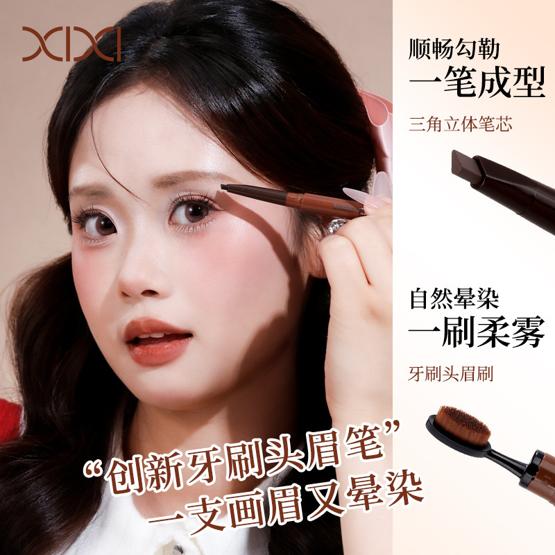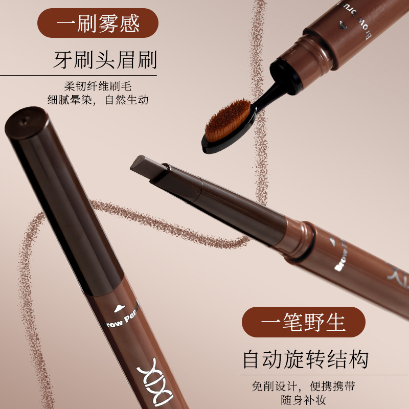 牙刷头眉笔持久防水防汗不脱色根根分明野生眉毛流感双头眉笔