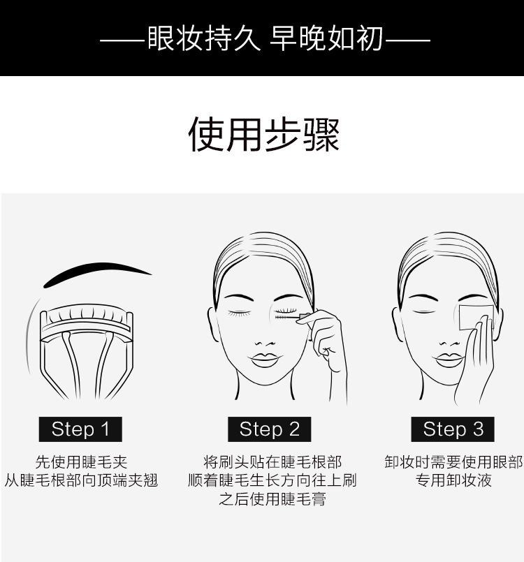 防水防汗纤长卷翘睫毛膏黑色持久不晕染