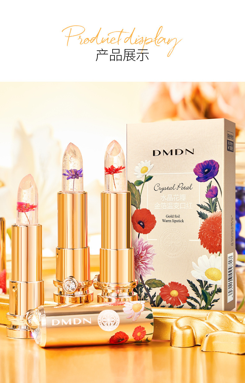 水晶花瓣金箔温变口红滋润保湿鲜花果冻变色唇膏千人千色显白