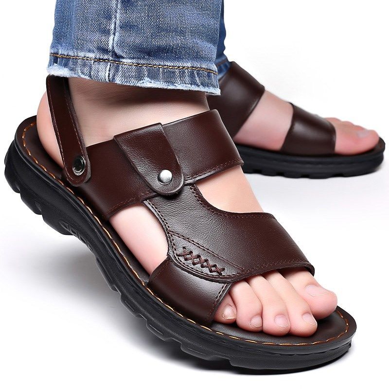 [全牛皮]真皮凉鞋男士夏季2025新款外穿凉拖鞋潮流开车防滑沙滩鞋