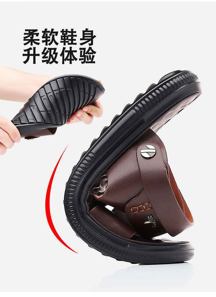 [全牛皮]真皮凉鞋男士夏季2025新款外穿凉拖鞋潮流开车防滑沙滩鞋