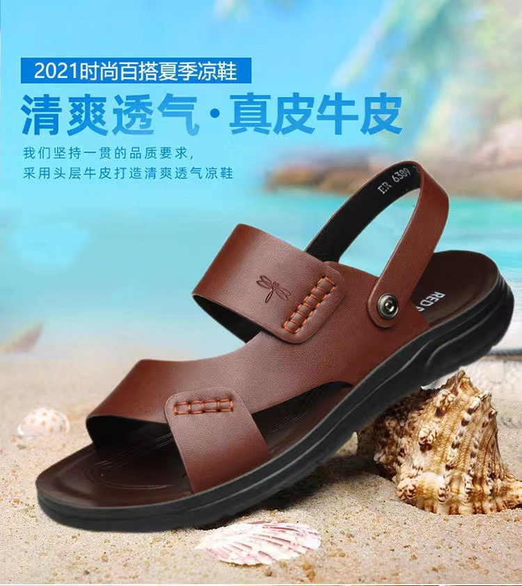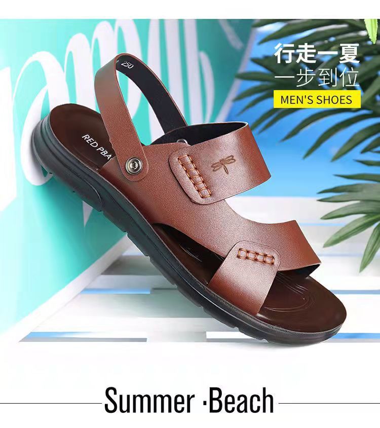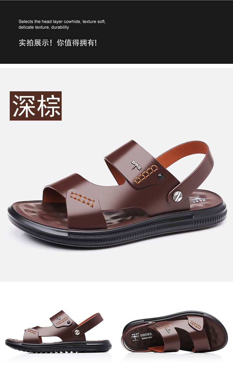 【加厚鞋底】2025蜻蜓牌男士凉鞋男夏季真皮透气沙滩鞋