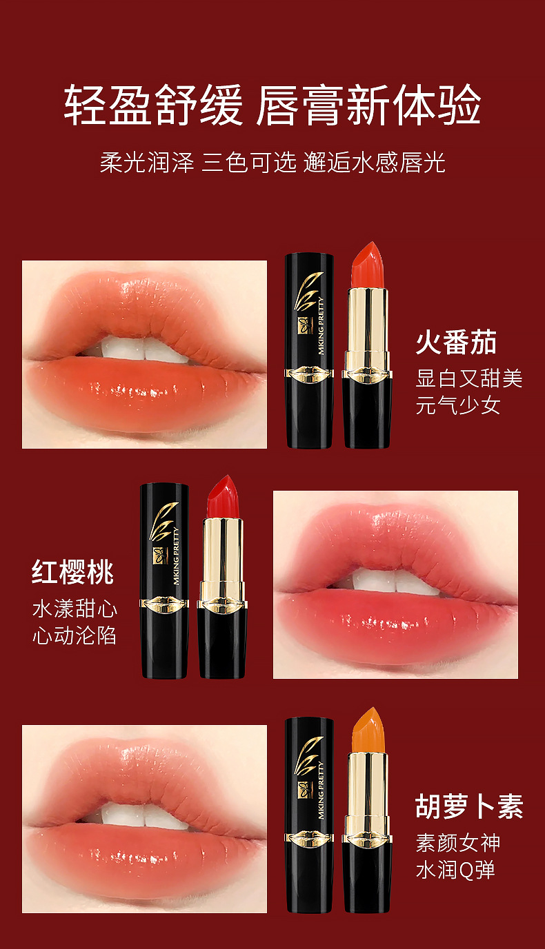 温变唇膏口红胡萝卜素红樱桃不易沾杯滋润保湿口红