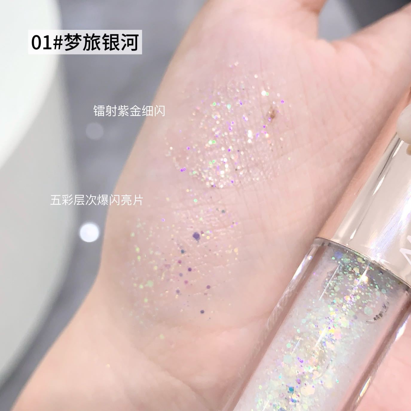 幻彩星河液体眼影珠光闪片提亮卧蚕日常淡妆灰粉色眼妆