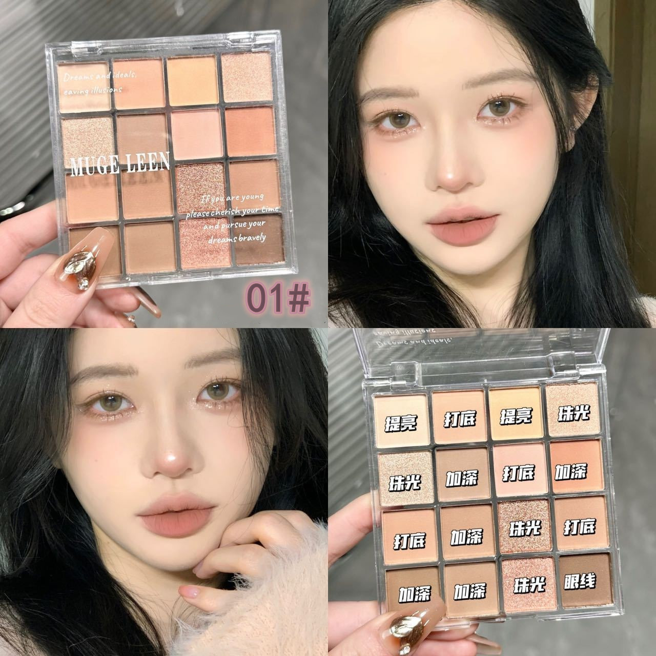 十六色方格眼影大地色珠光哑光偏光闪片细闪早八多功能眼影盘