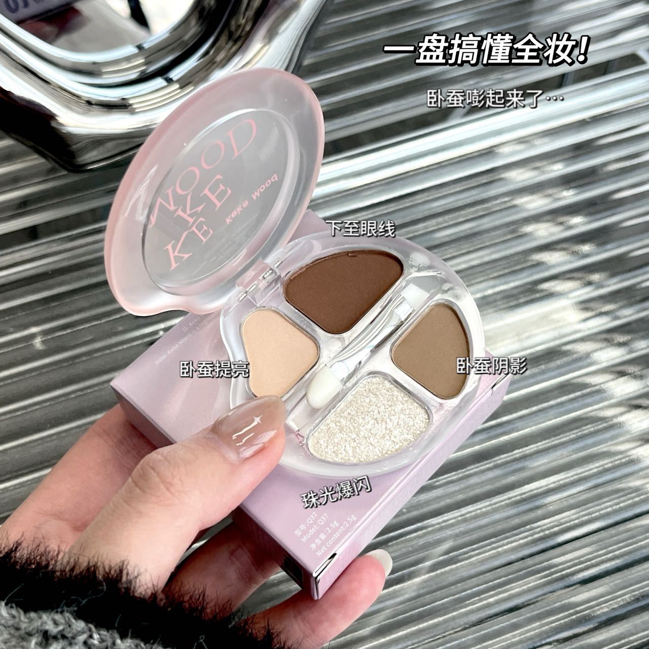 四色卧蚕盘珠光哑光眼影一体盘淡颜不易脱妆新手