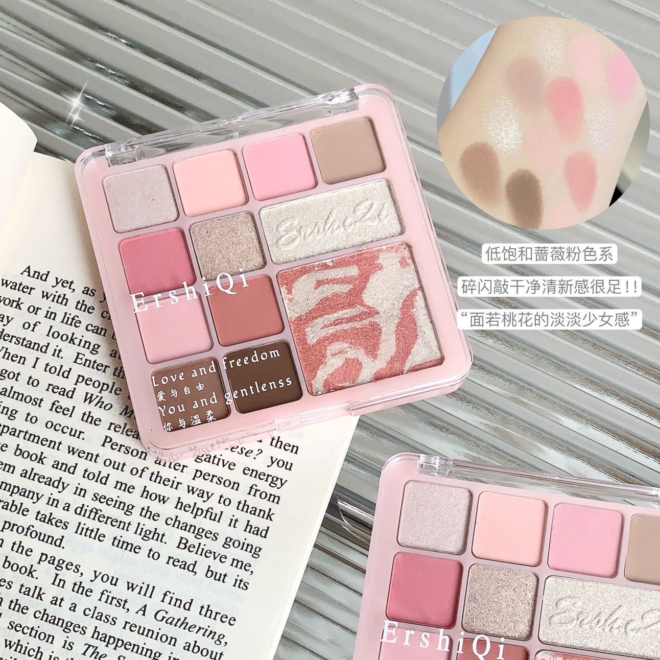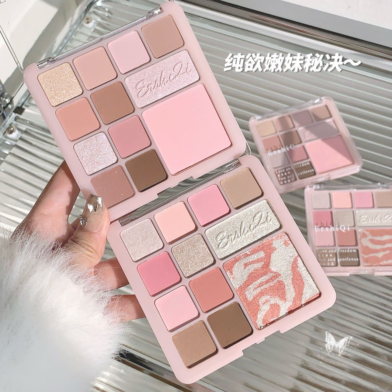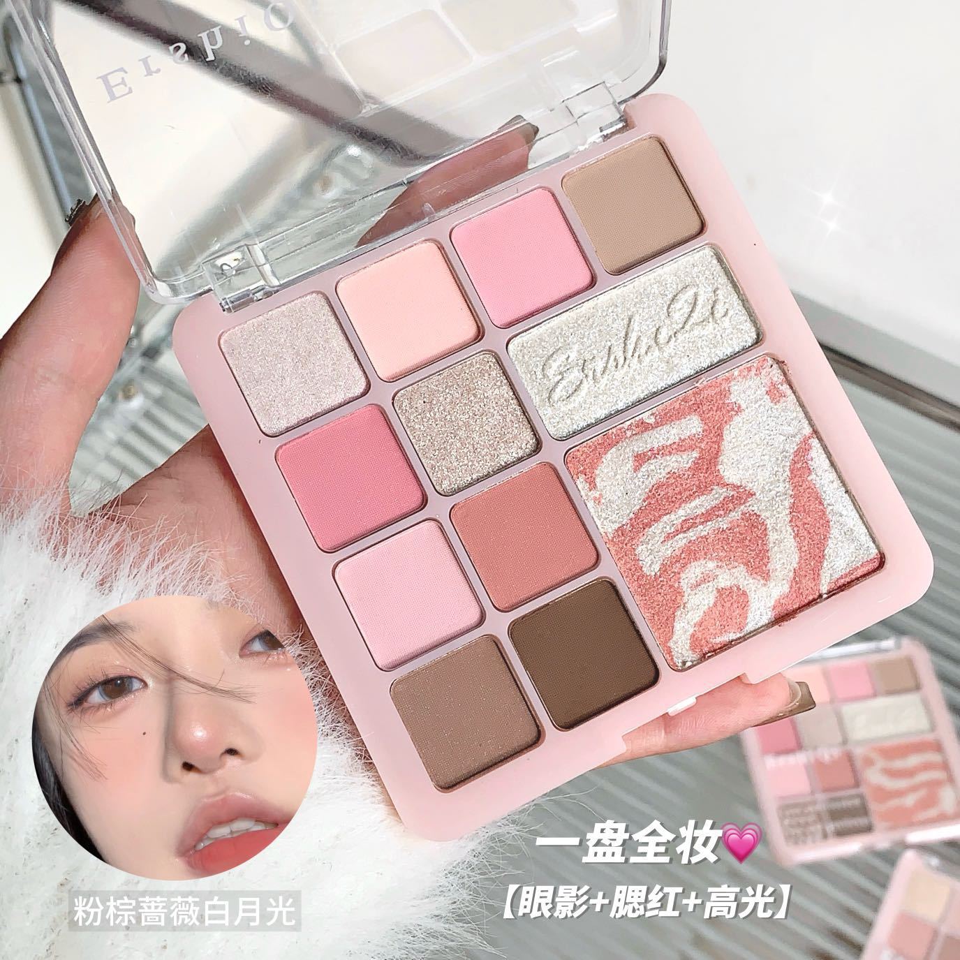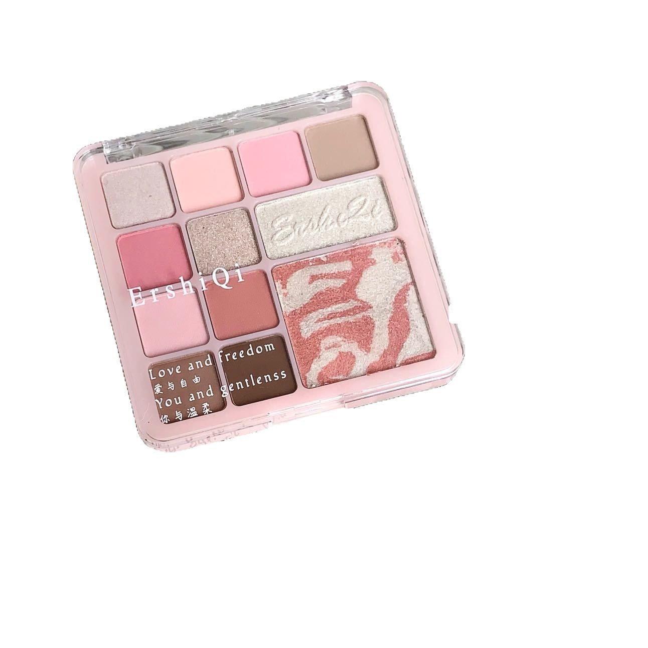 粉雾综合盘玫瑰奶茶珠光哑光大地色眼影高光腮红一体