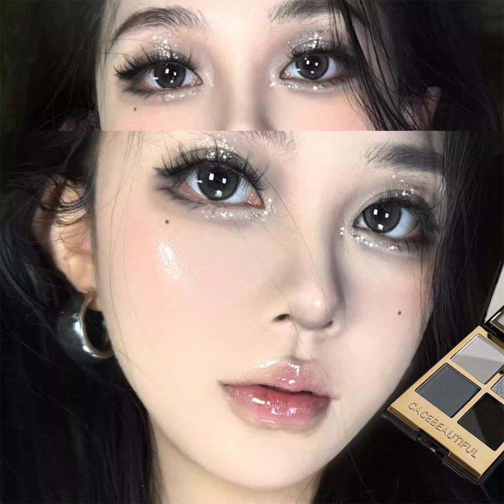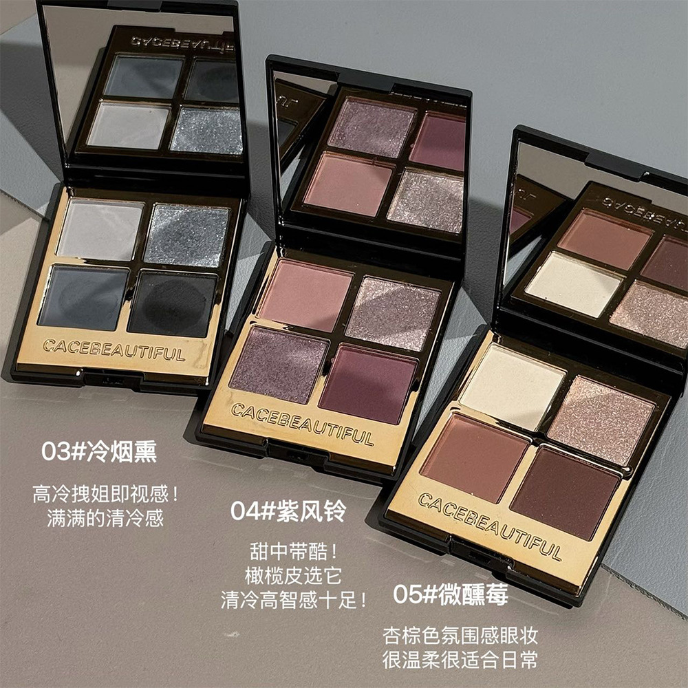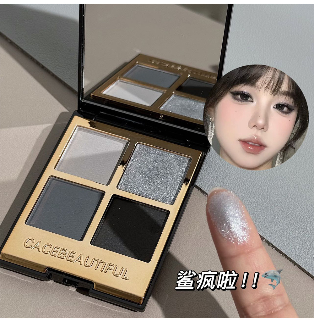 黑金四色眼影大地色珠光日常四色潮女出街补妆便携褐色深色系