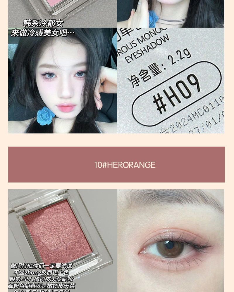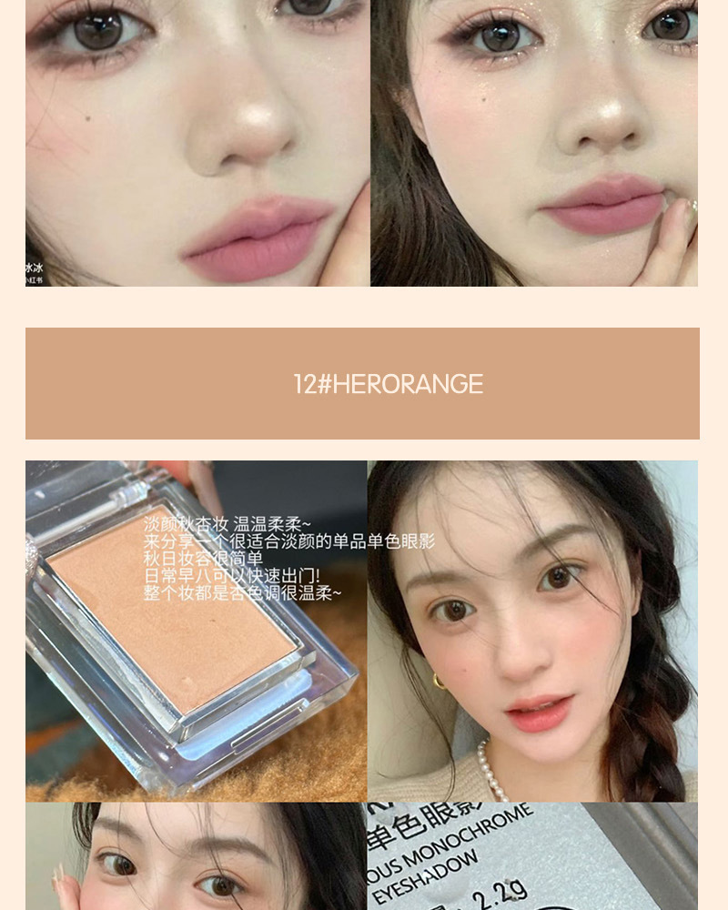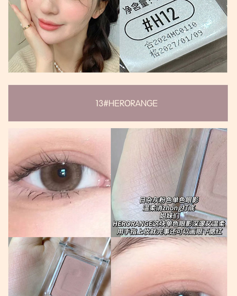 单色眼影低饱和珠光哑光粉质细腻打底色女彩妆