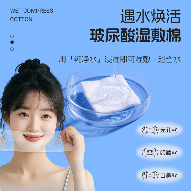 小棉花玻尿酸湿敷棉片三合一纯净水敷脸可拉伸开孔款面膜