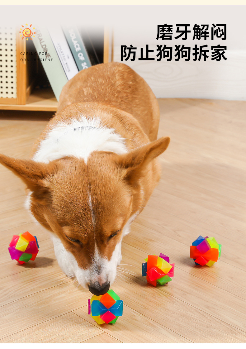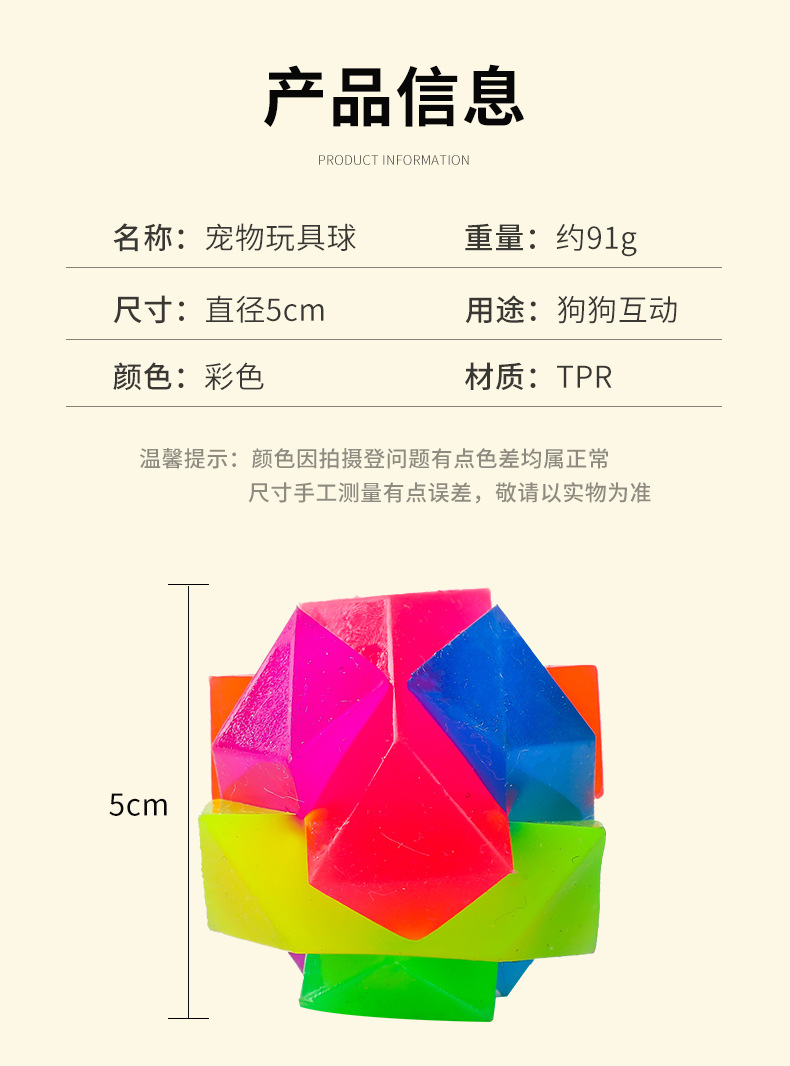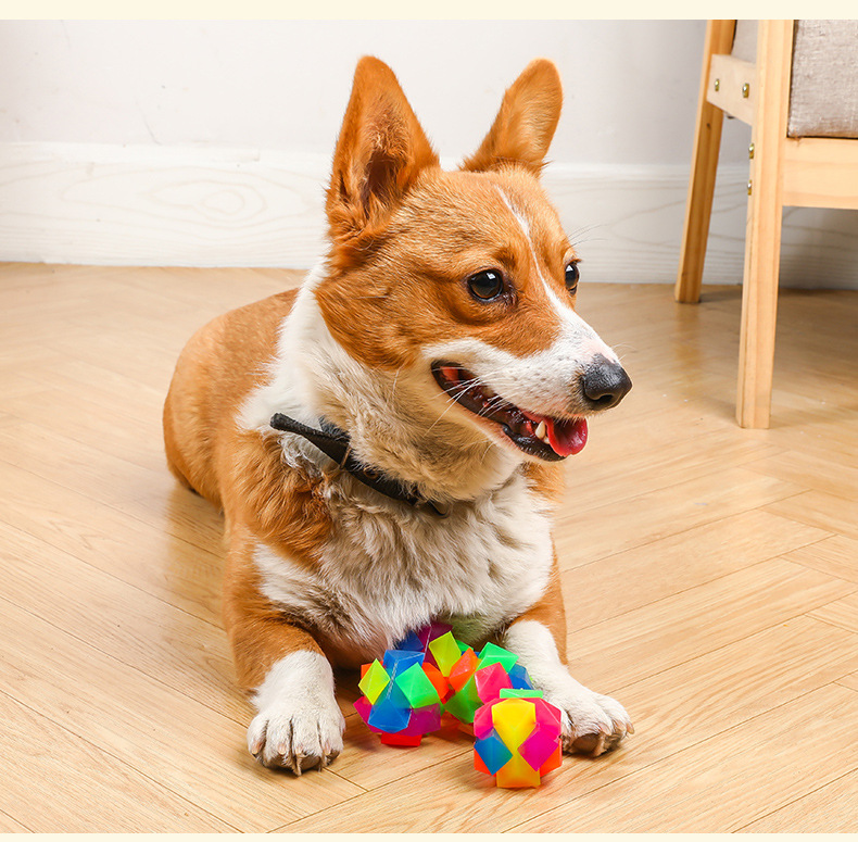 发光宠物玩具球实心闪光弹力啃咬球方块狗狗互动宠物用品