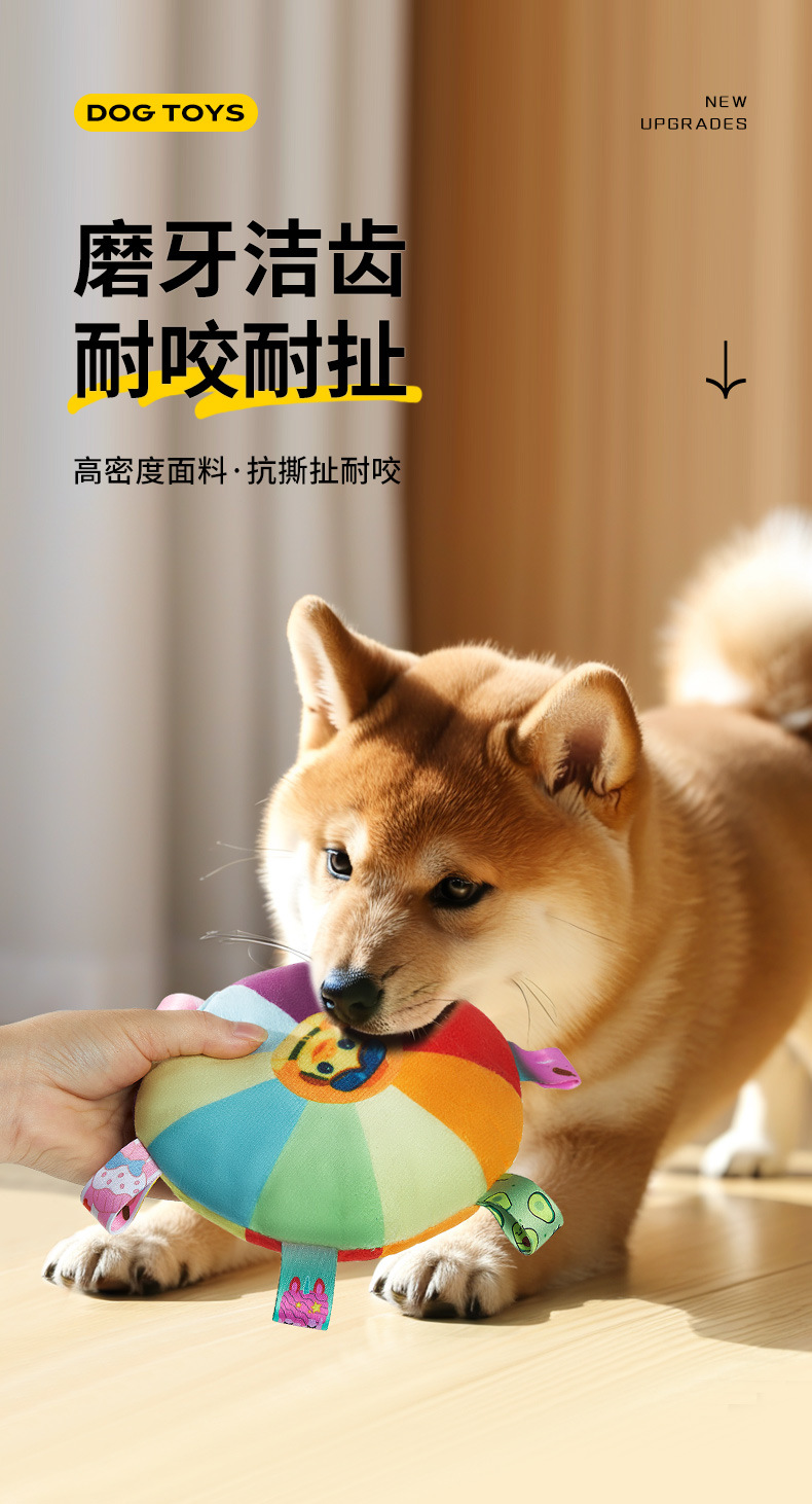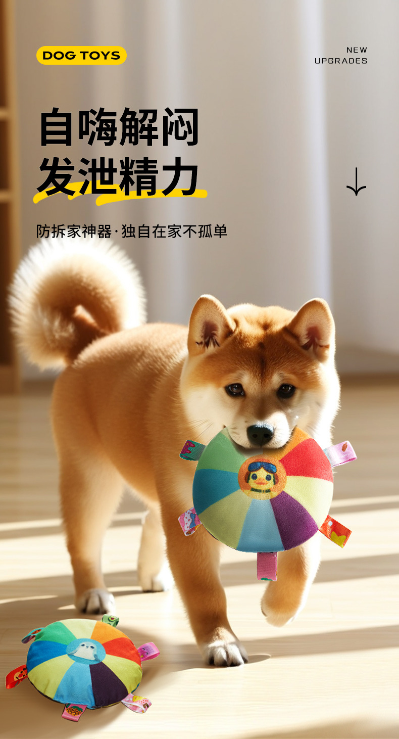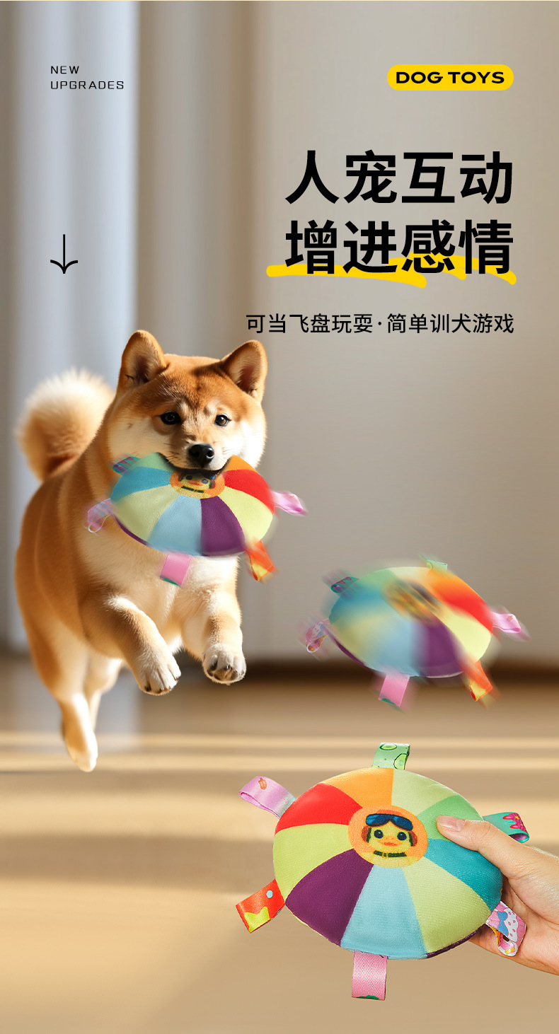 狗狗飞盘玩具毛绒发声互动小狗飞盘磨牙耐咬宠物边牧训练训狗