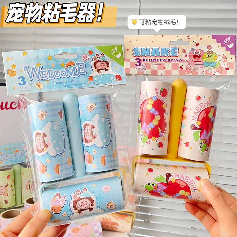 卡通粘毛器家用粘毛滚筒宠物除毛器毛发粘毛器可撕式纸加宽粘毛滚