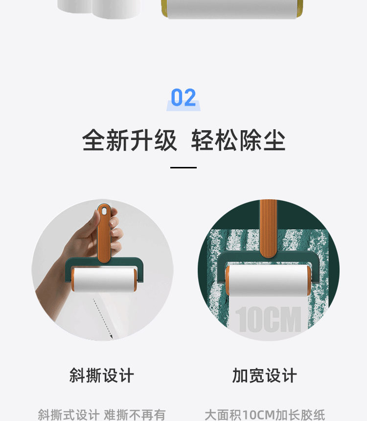 粘毛纸可撕式滚筒除尘纸清洁胶带衣服粘毛滚筒刷宠物粘毛器粘毛滚