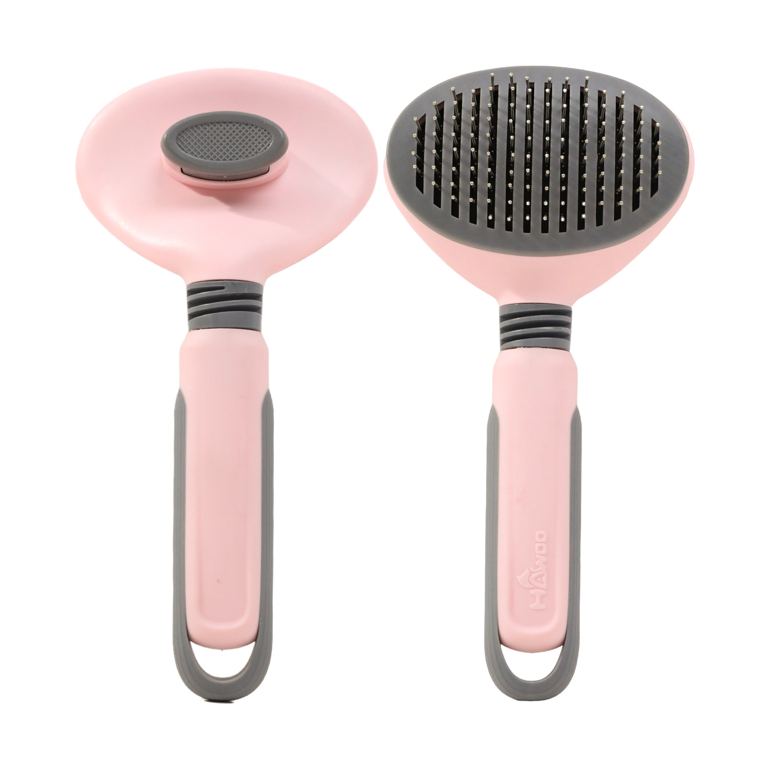 圆形钢针自洁梳-粉色21.5cm