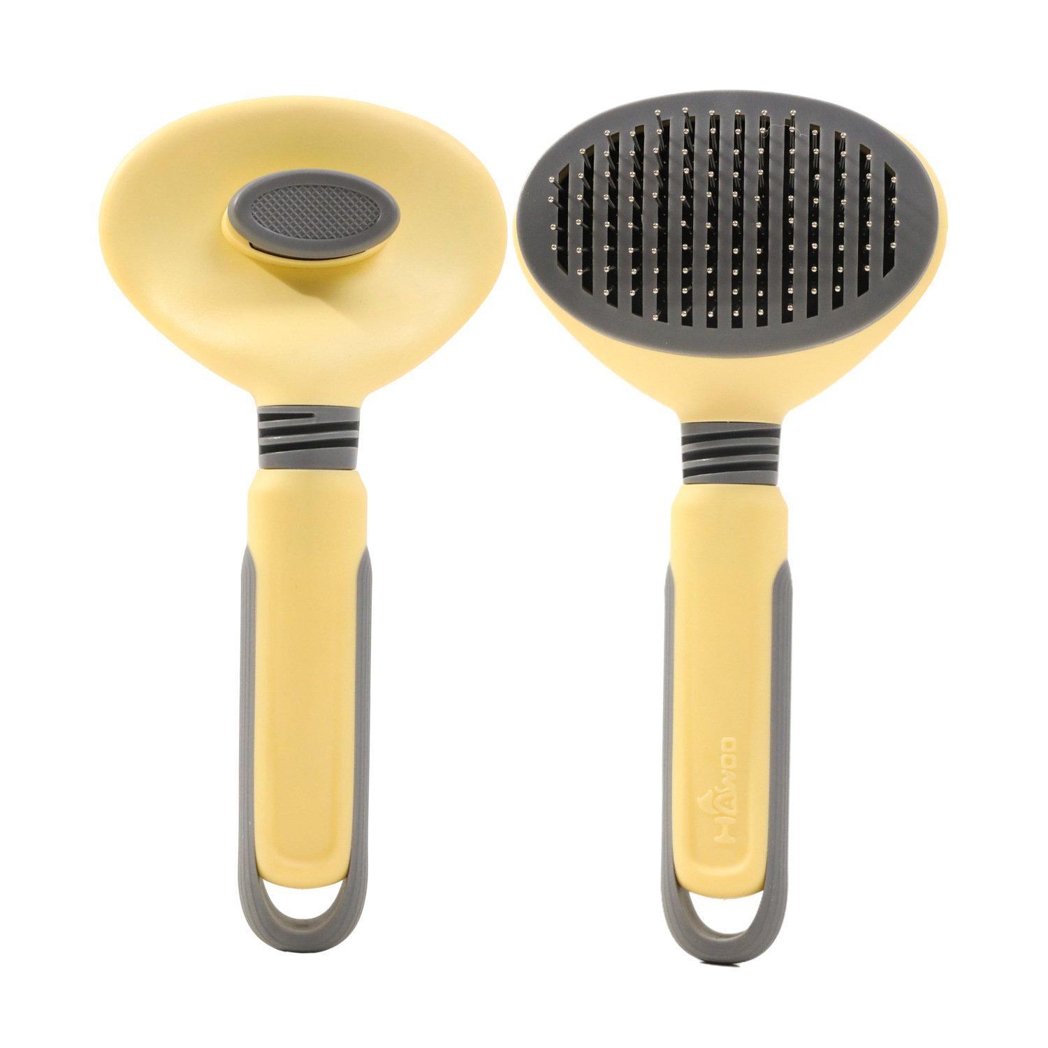 圆形钢针自洁梳-黄色21.5cm