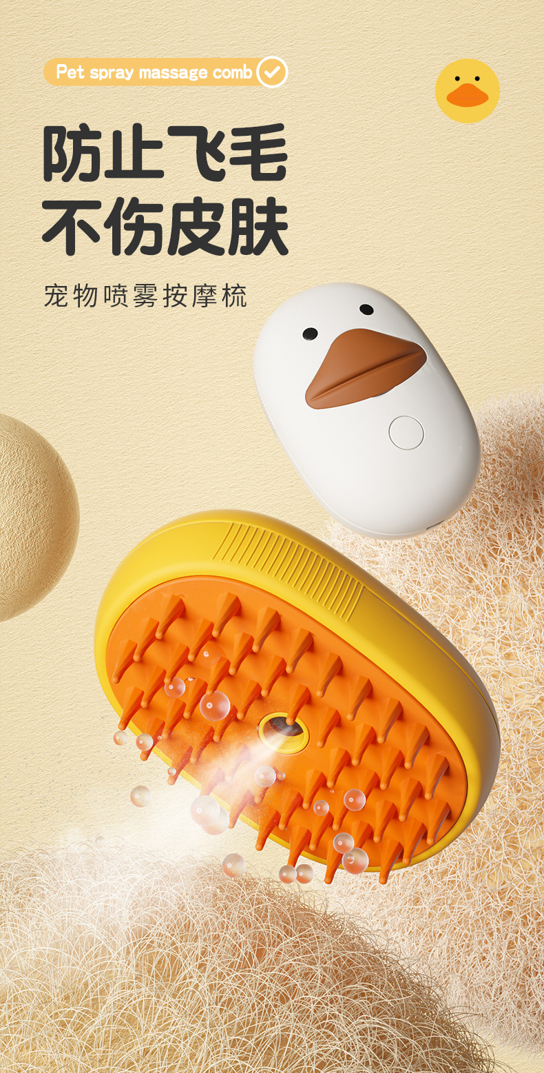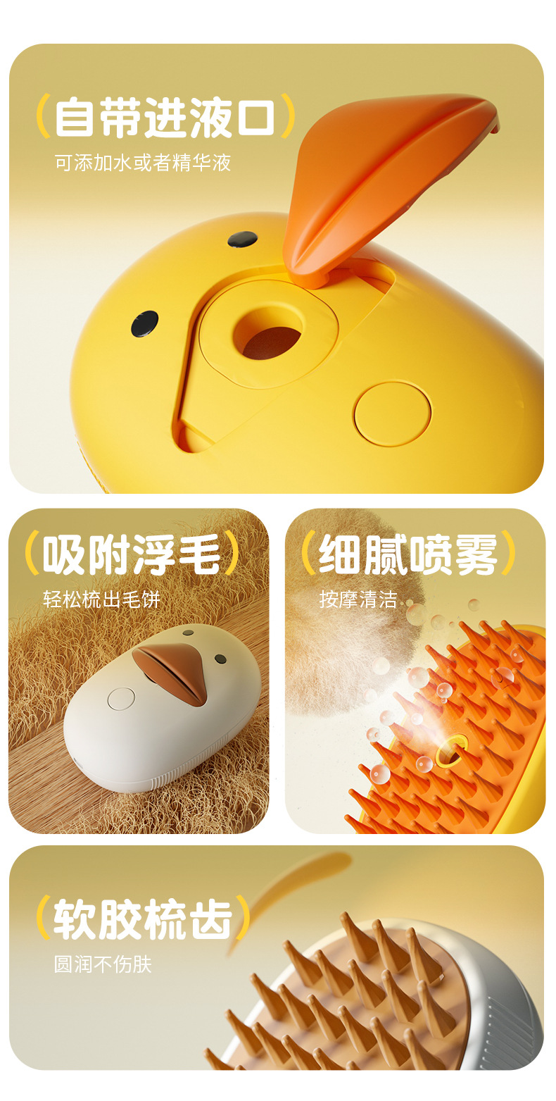宠物喷雾按摩梳去浮毛电动小鸭喷雾梳一键喷雾防飞毛洗澡刷清洁梳