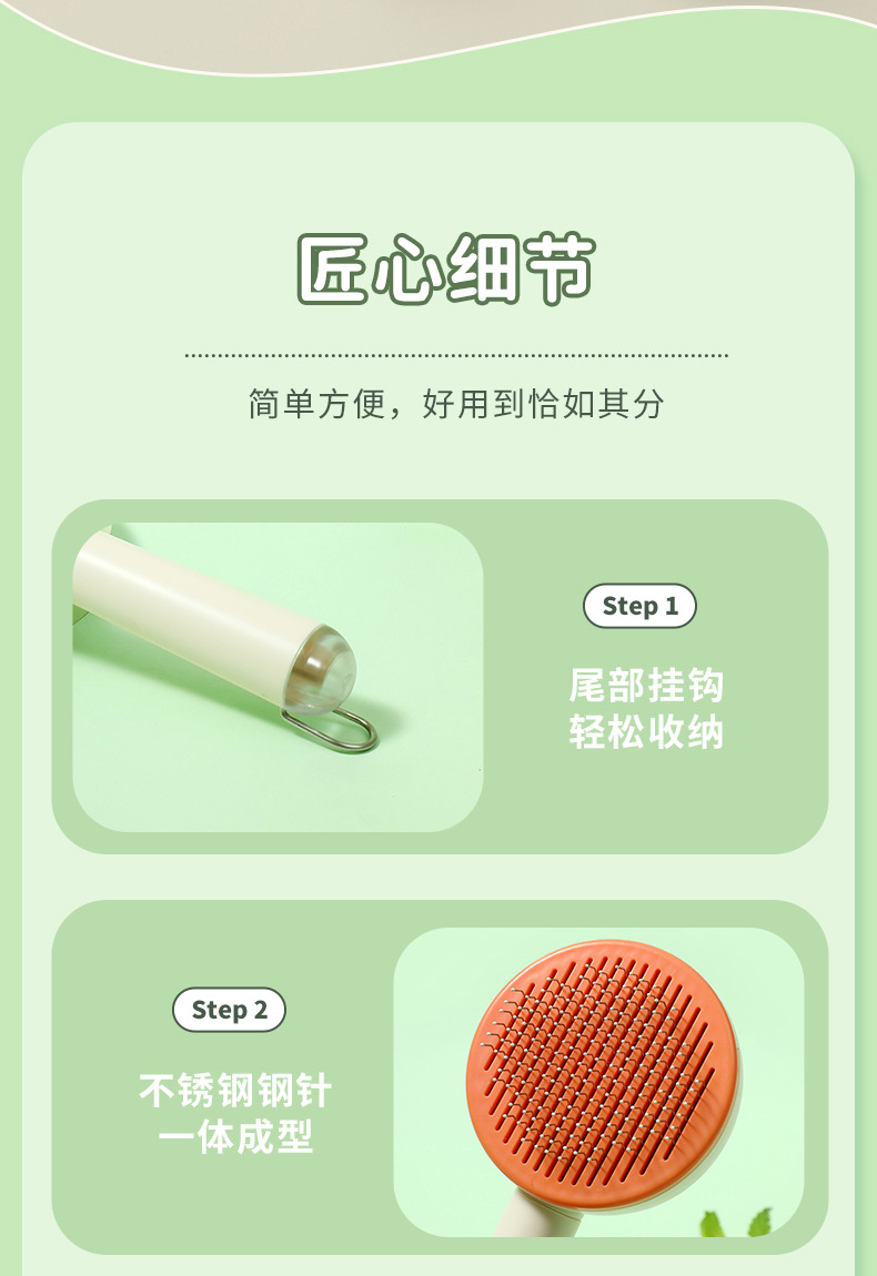 宠物挂钩式梳子一键除毛猫梳子开结不锈钢细针梳猫咪宠物用品