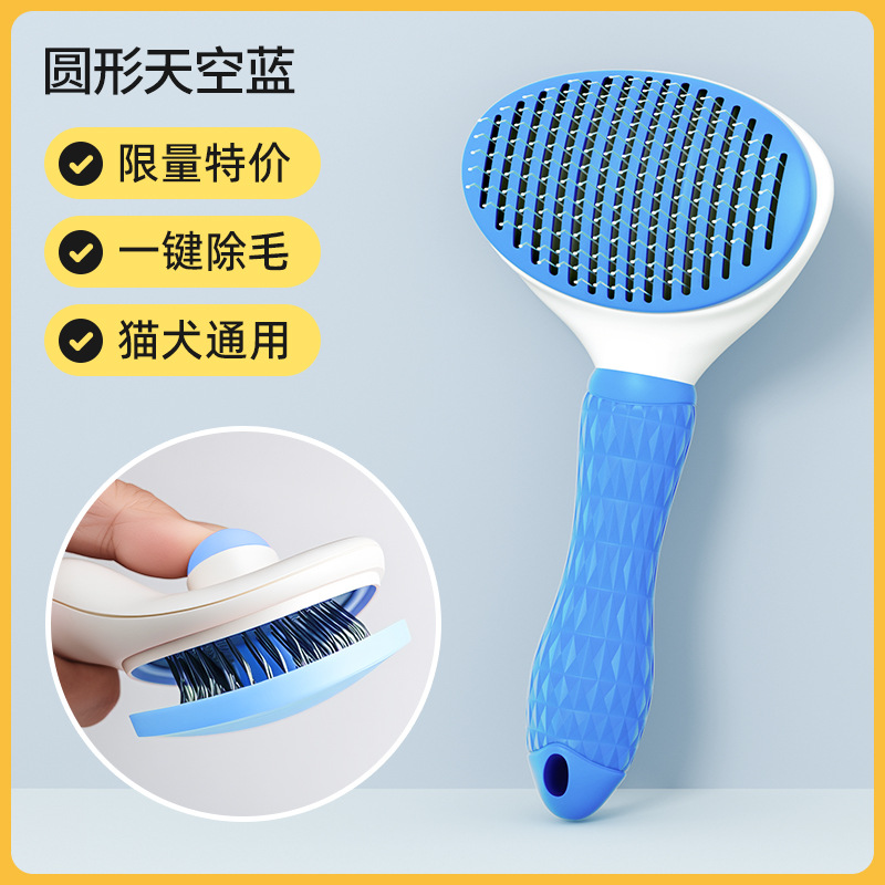 升级防滑手柄-马卡龙蓝自洁梳【猫狗通用】