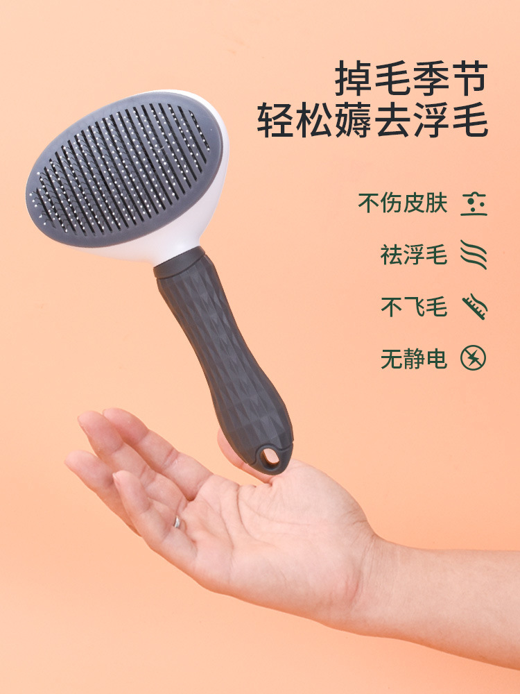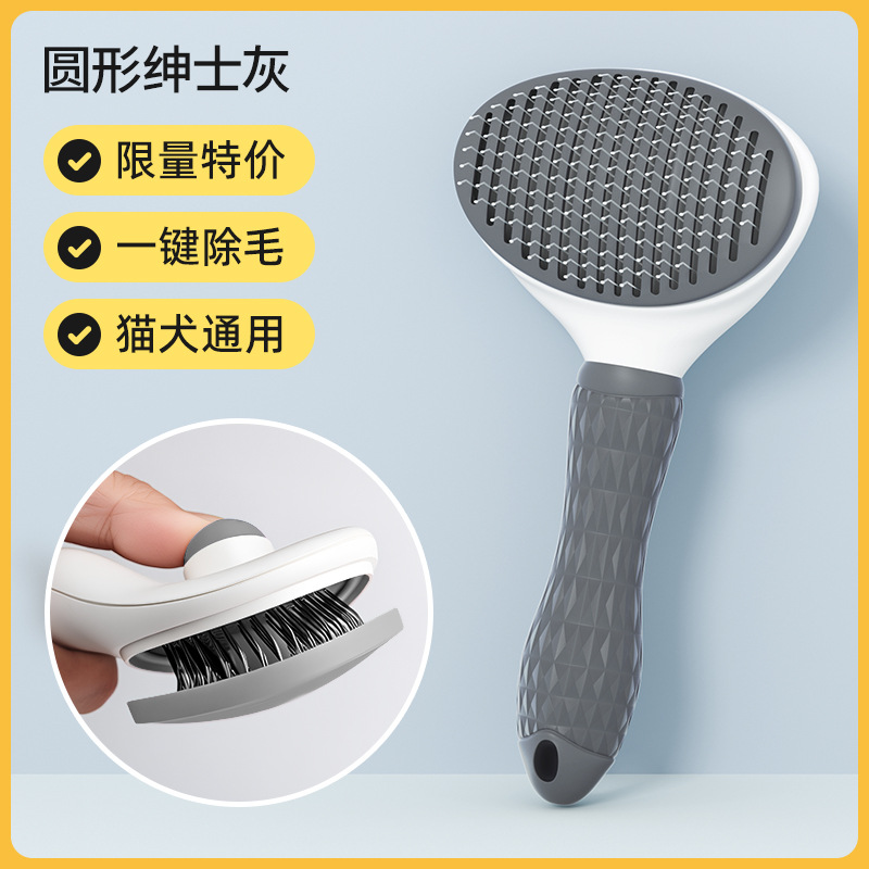 升级防滑手柄-马卡龙灰自洁梳【猫狗通用】
