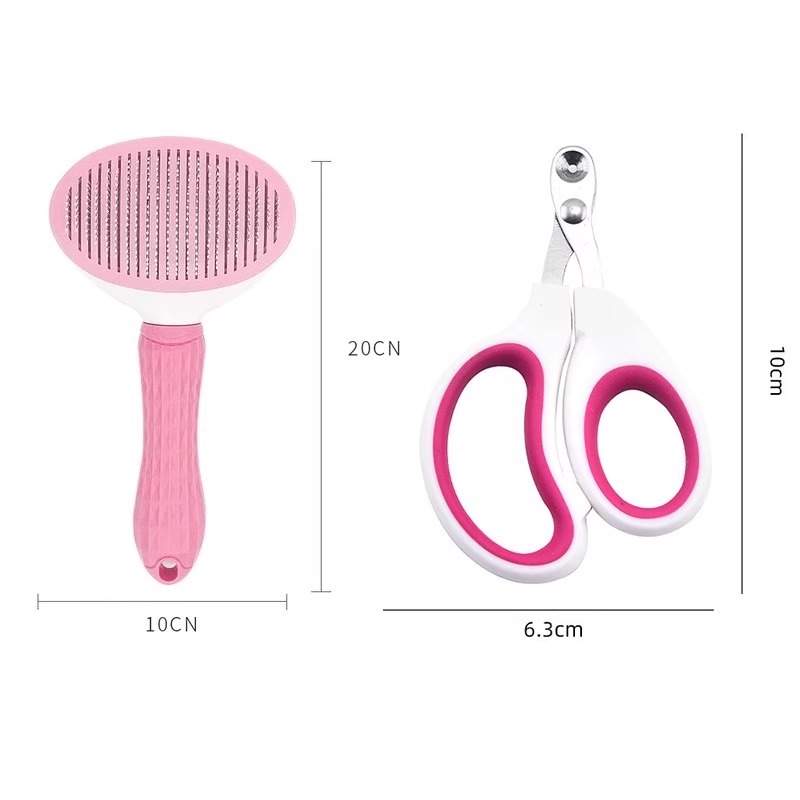 升级防滑手柄-马卡龙粉自洁梳【猫狗通用】