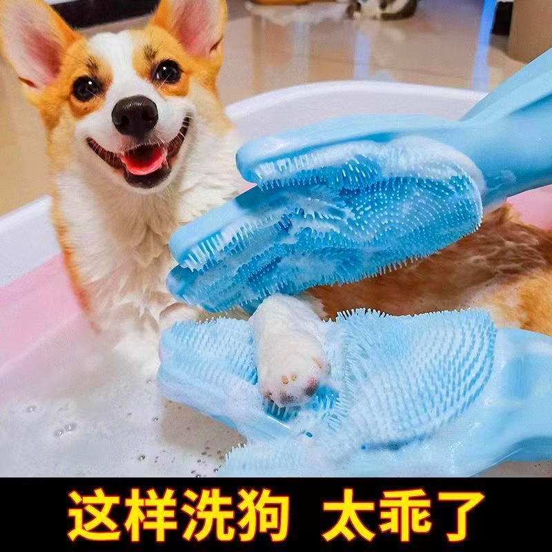 宠物狗狗猫咪洗澡手套神器硅胶搓澡按摩刷工具加长防抓咬用品