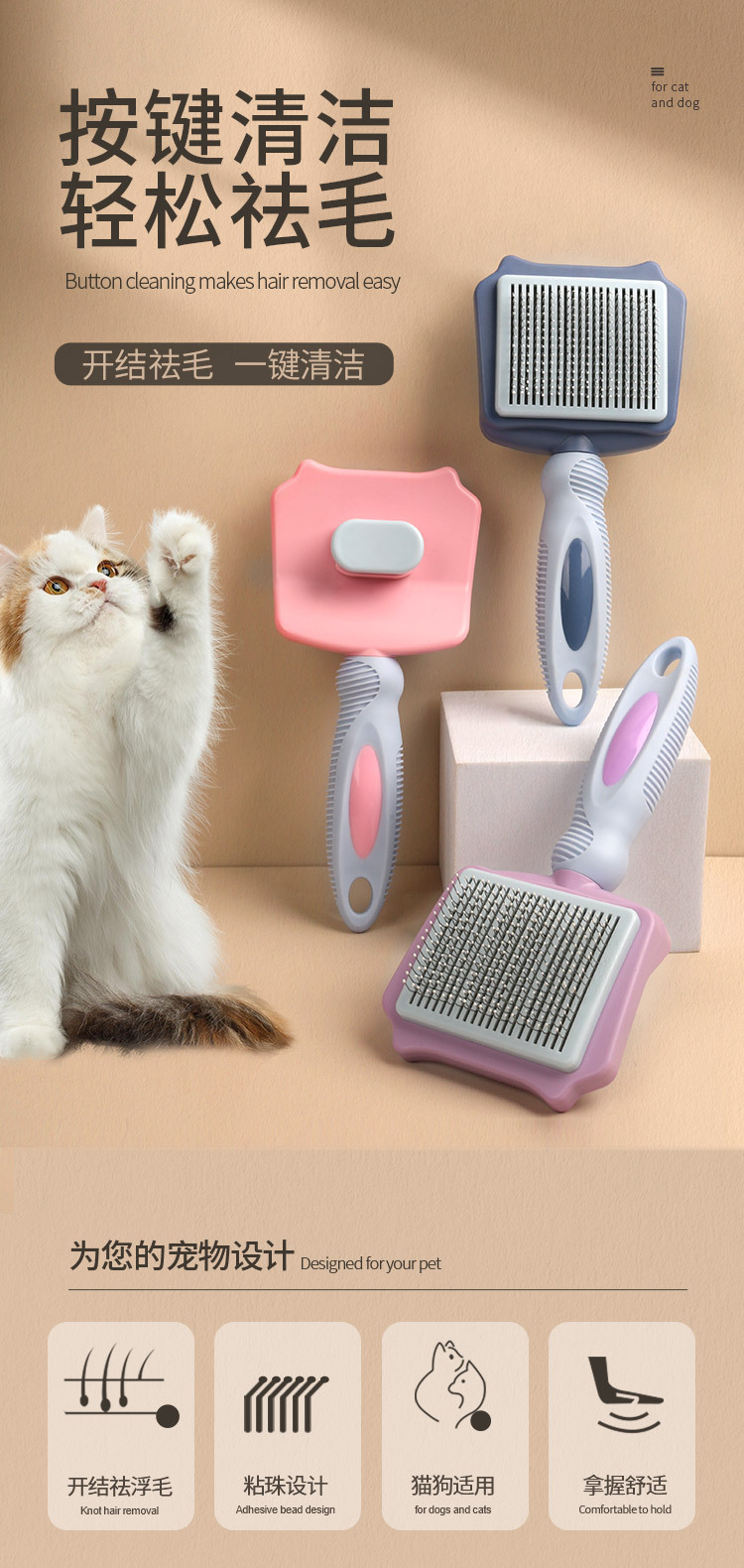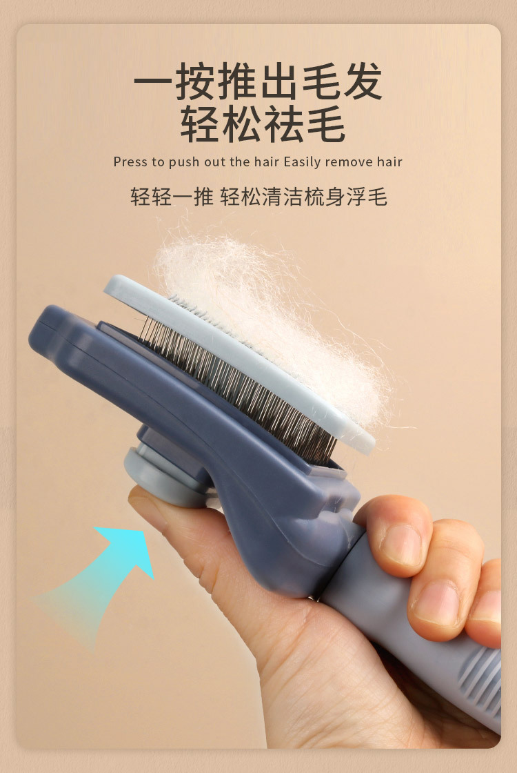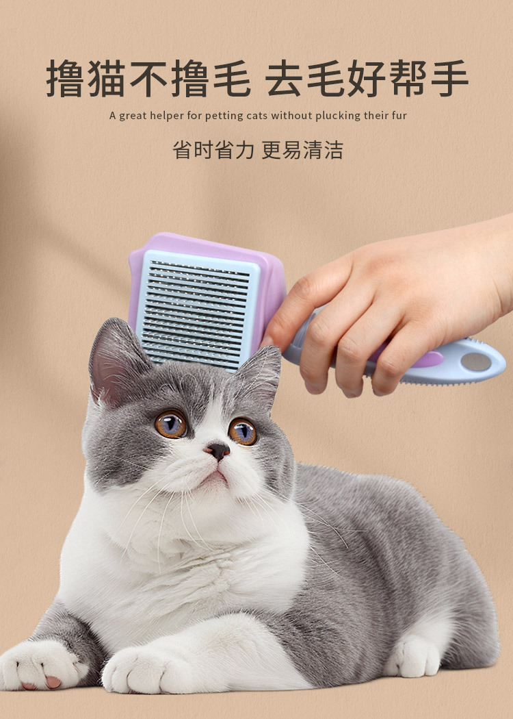 猫梳子去浮毛针梳猫咪按键自洁褪毛梳宠物梳子猫毛梳猫咪梳毛