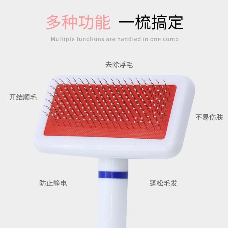 宠物梳子皮草小白梳不锈钢针梳狗狗猫咪白色塑料手柄猫梳子宠物梳