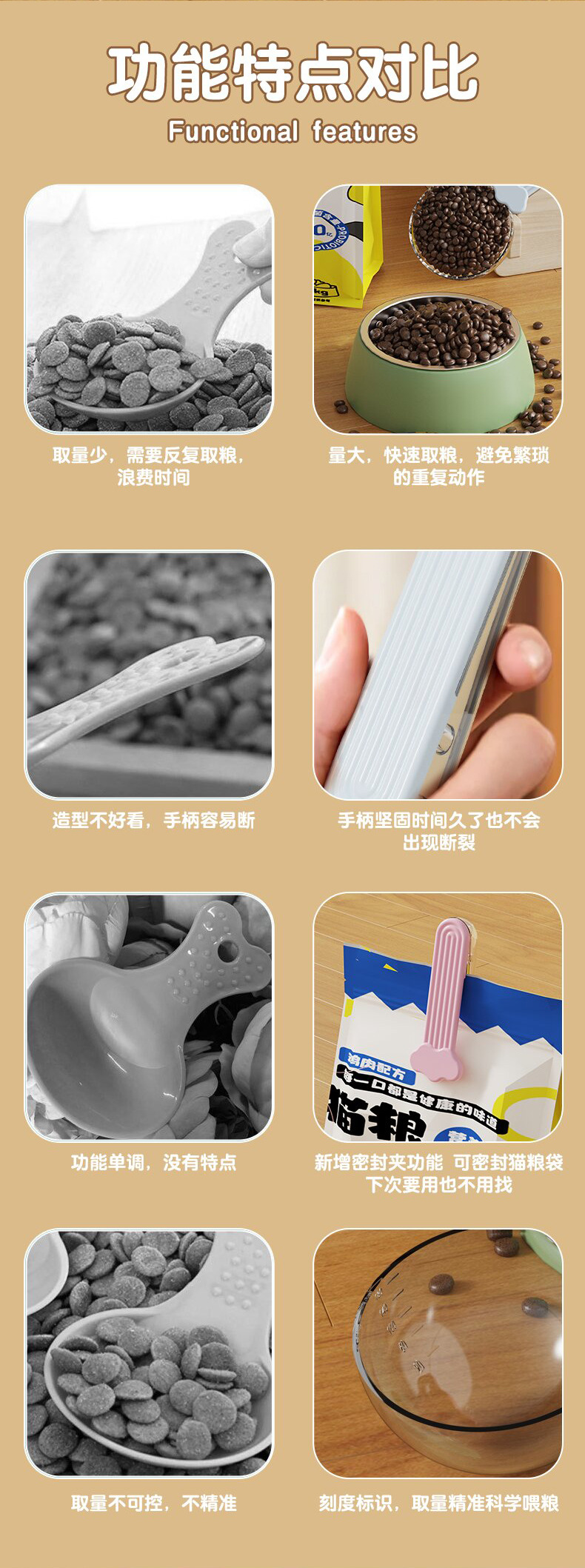 宠物粮食勺带刻度狗粮勺带夹子大号猫粮勺子可视多功能米勺猫粮铲