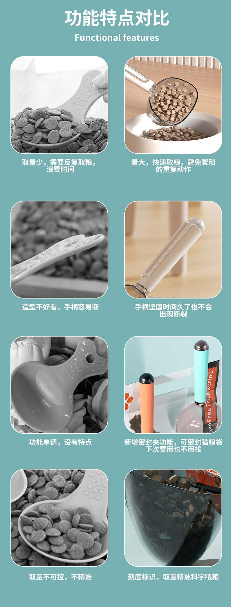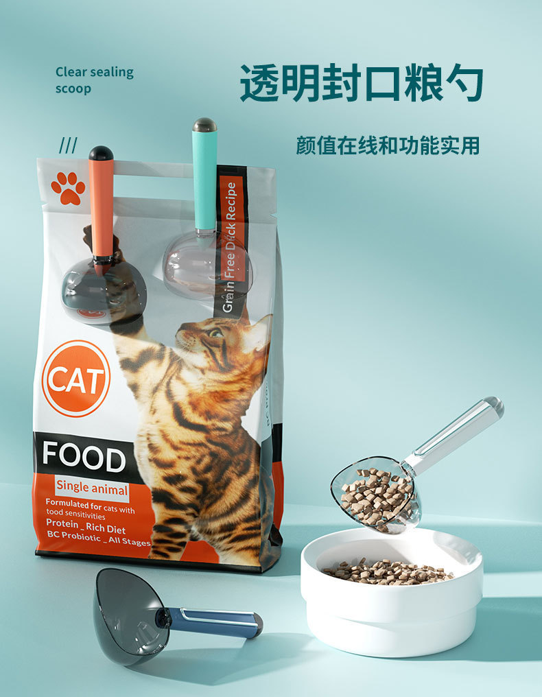 宠物粮食计量勺带刻度多功能长柄猫狗粮勺封口夹子计量杯食物铲