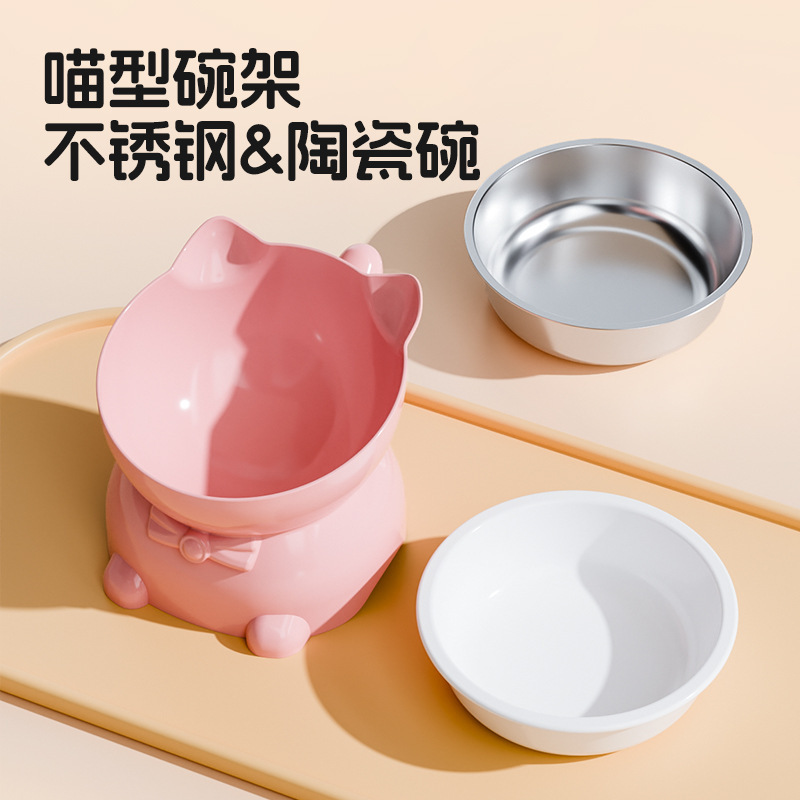 猫碗陶瓷猫食盆猫咪碗狗狗碗食盆宠物斜口保护颈椎防打翻双碗喝水