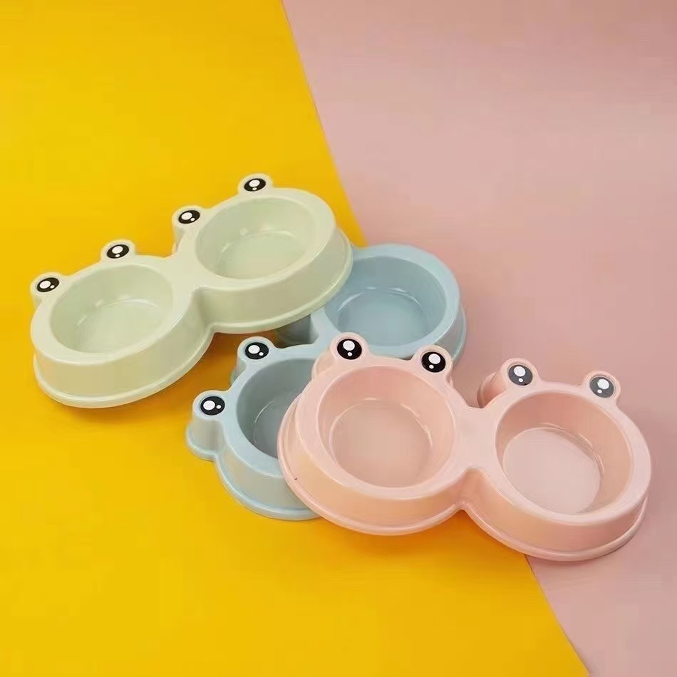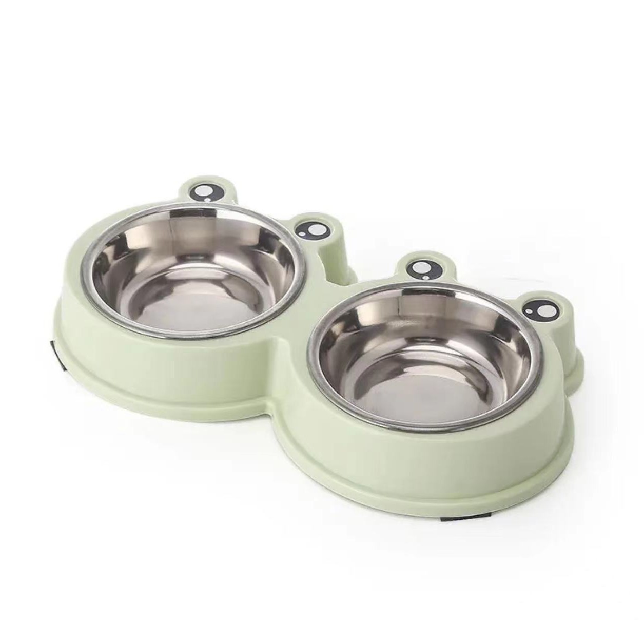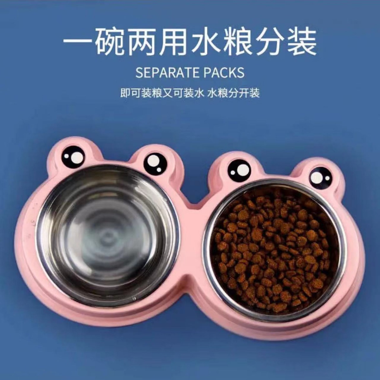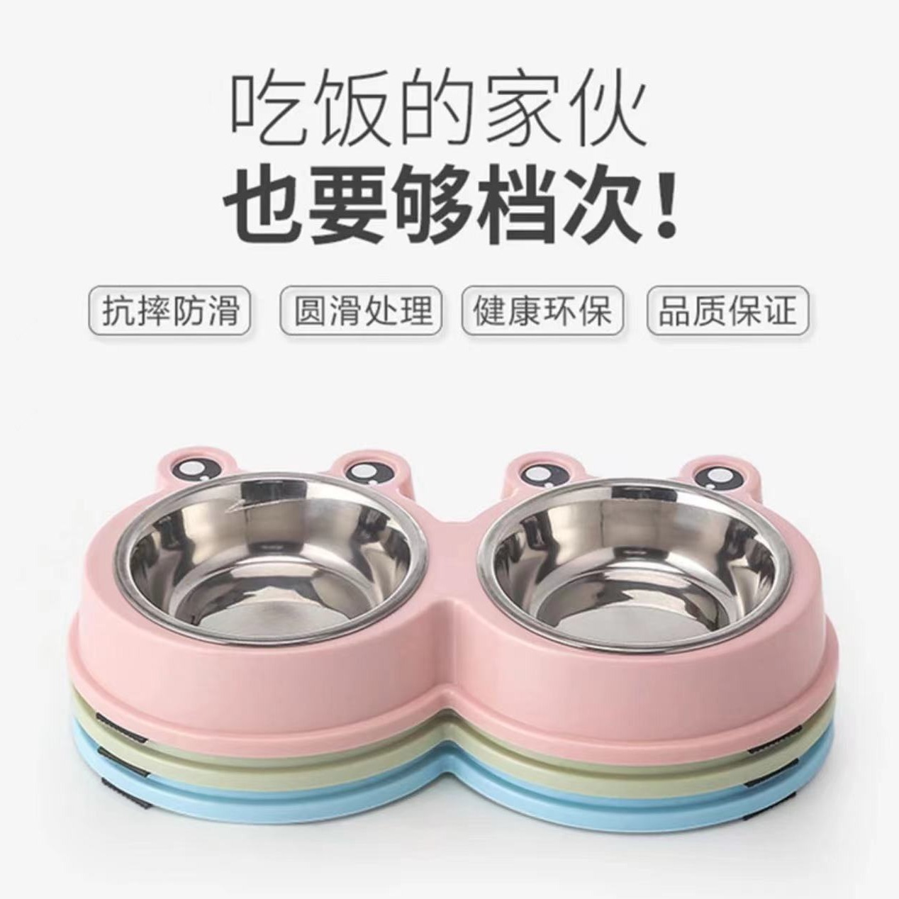猫咪用品猫碗狗碗宠物碗猫狗食具一体防打翻塑料不锈钢青蛙双碗