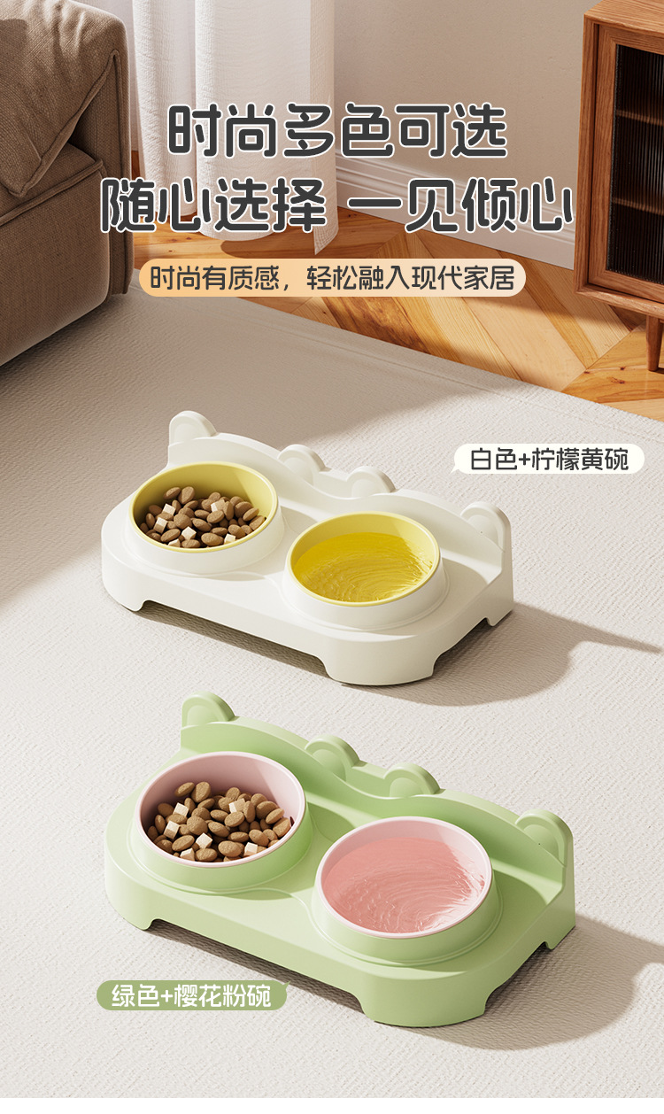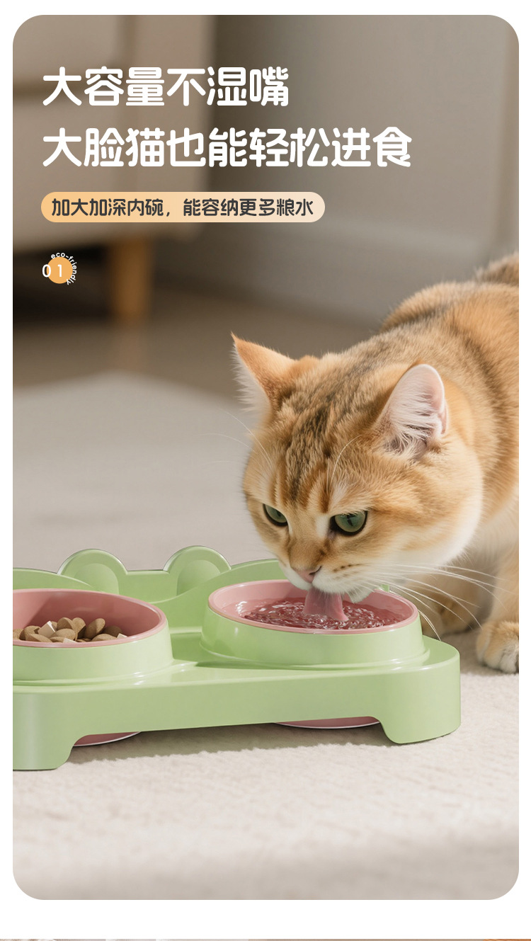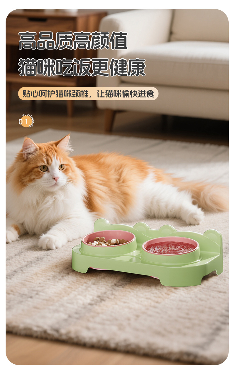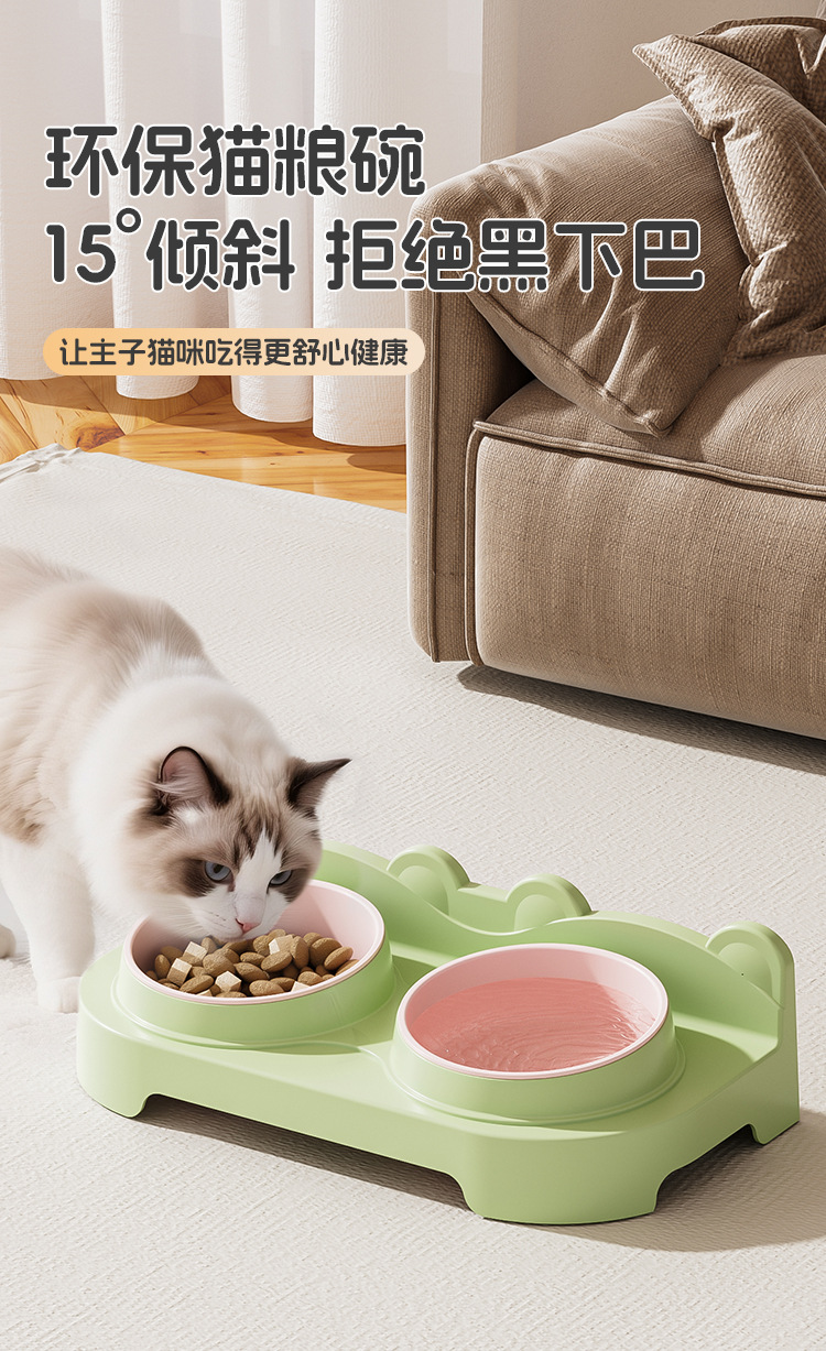 猫碗环保猫食盆猫咪饭碗双碗斜口狗狗碗喝水喂食碗保护颈椎防打翻