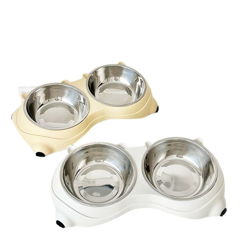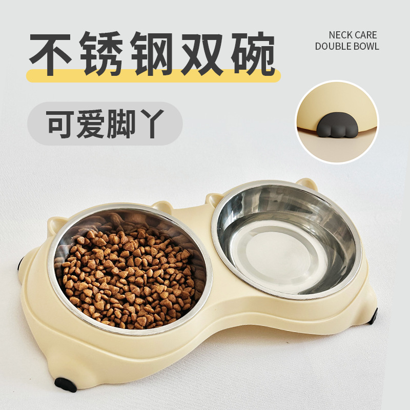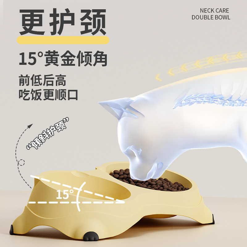 猫咪宠物碗防打翻护颈斜口双碗喂食饮水二合一猫咪碗不锈钢碗