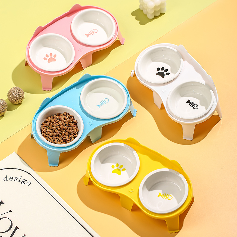 猫碗陶瓷猫食盆猫咪碗宠物碗斜口保护颈椎防打翻双碗喝水喂食