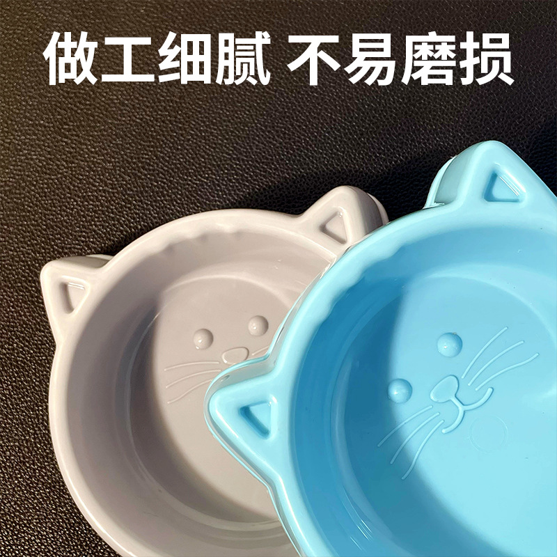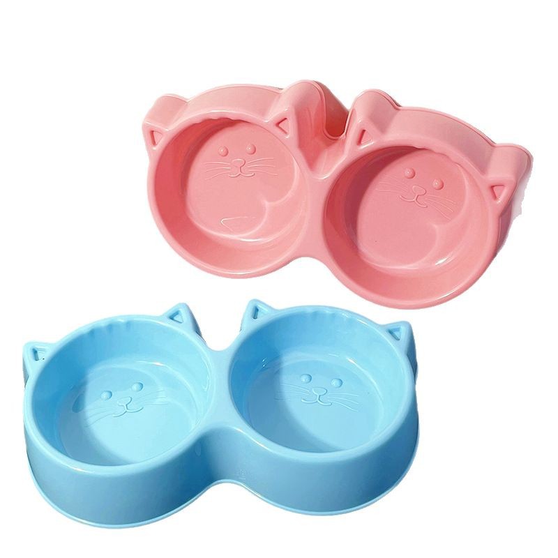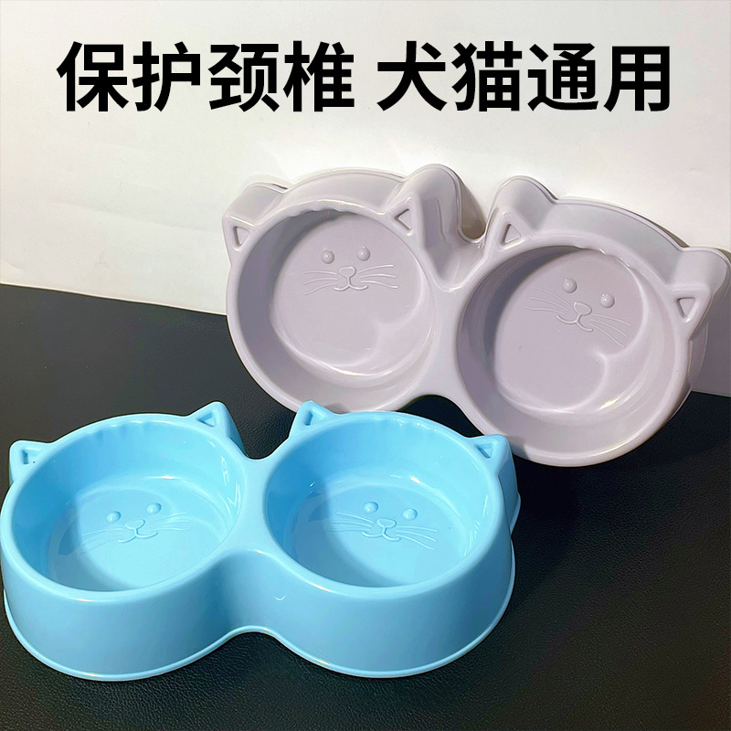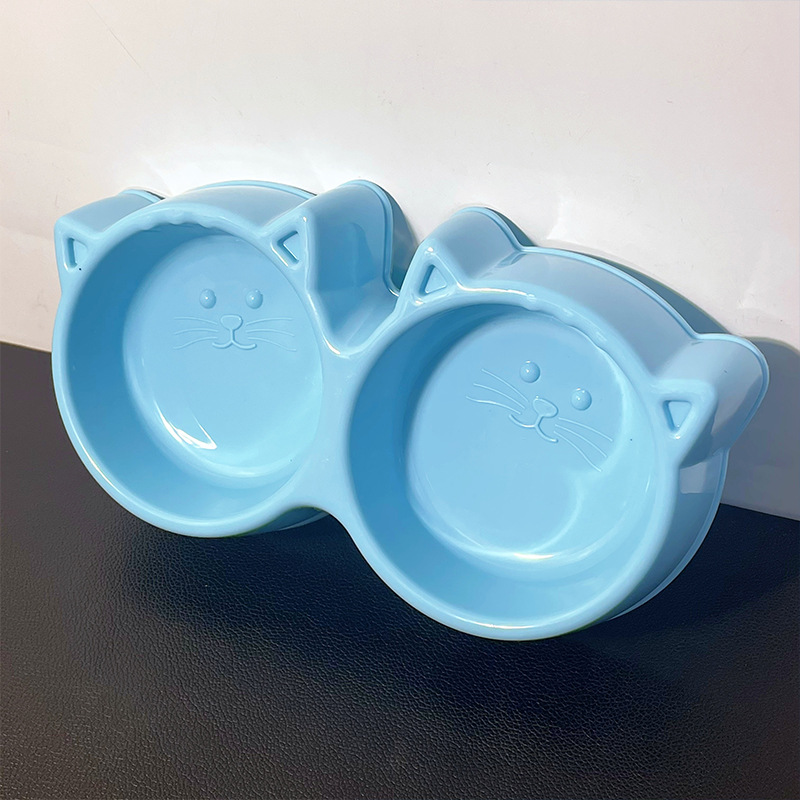 宠物碗马卡龙色大猫脸双碗二合一狗碗猫犬通用防打翻宠物食具猫碗