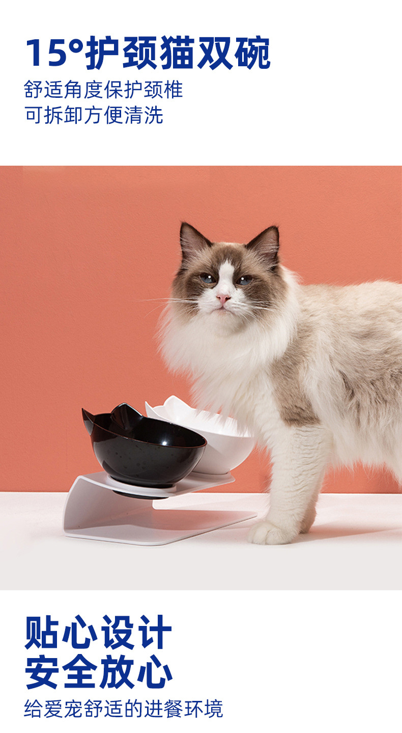 猫碗狗狗猫咪高脚护颈宠物碗防滑斜口饮水喂食猫碗喂水碗双碗