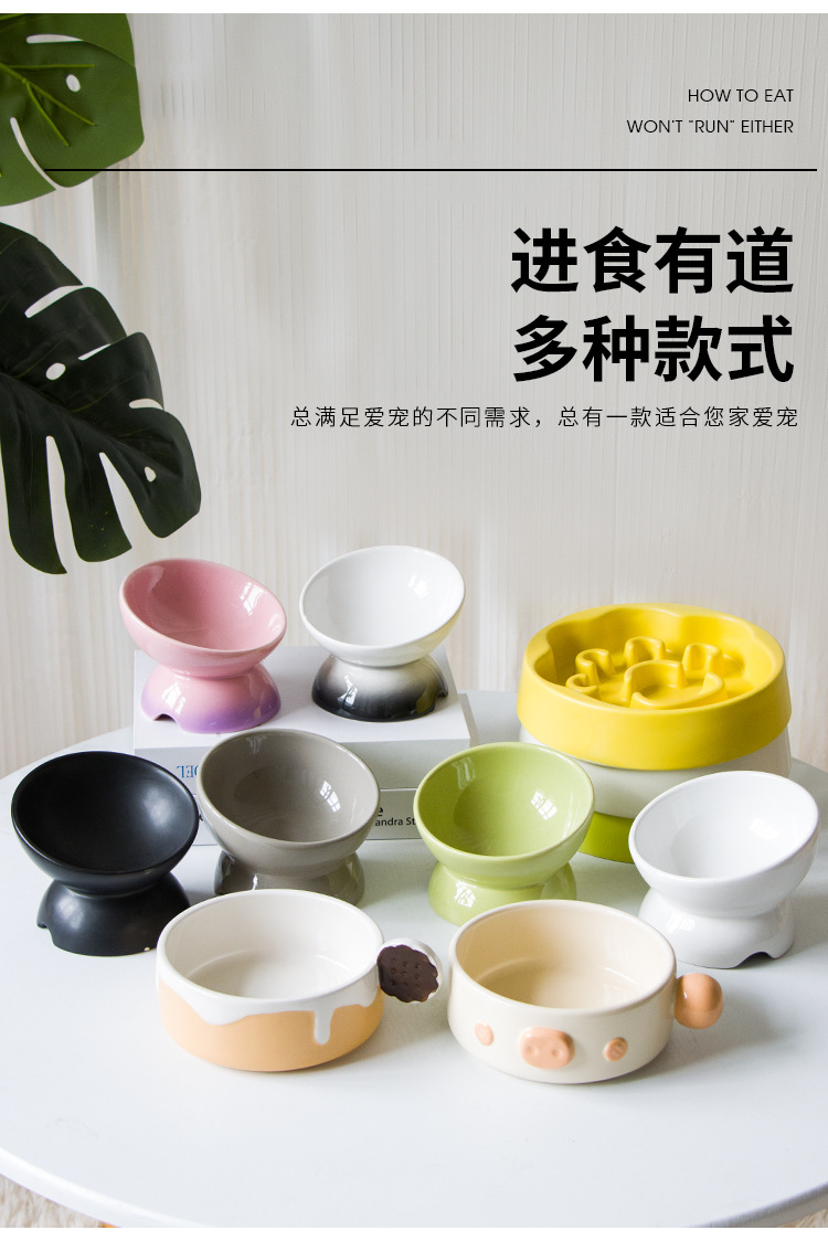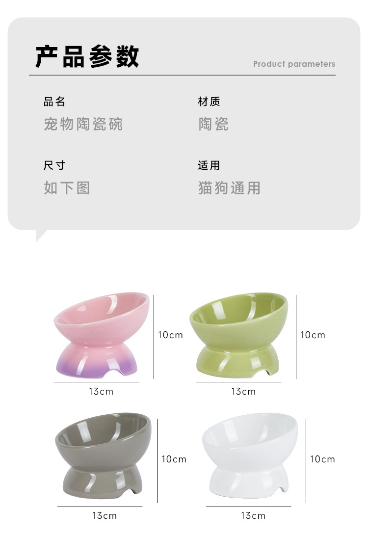 猫碗陶瓷高脚宠物碗保护颈椎猫饭盆猫咪水碗狗斜口碗助消化