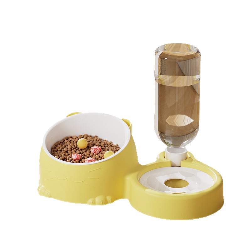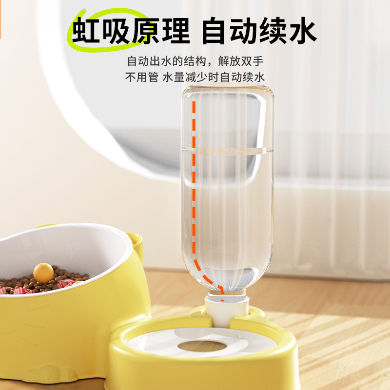 - 奶黄色陶瓷碗【不黑下巴+喂食+自动蓄水】