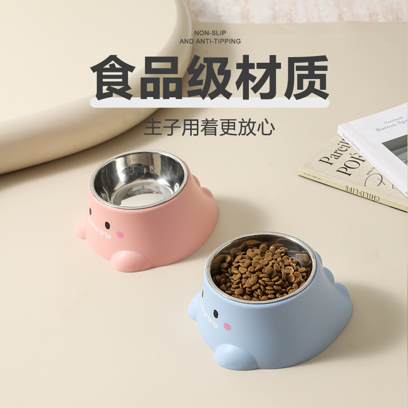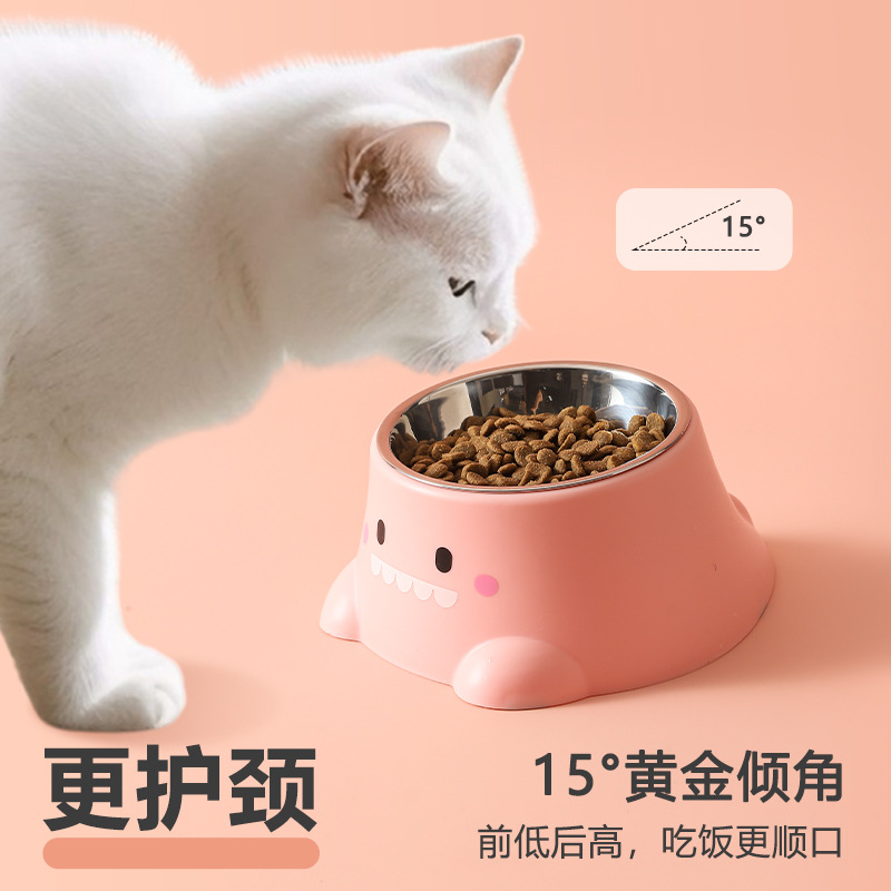 宠物碗不锈钢猫咪斜口护颈饮水碗高脚单碗猫碗防滑防打翻食具