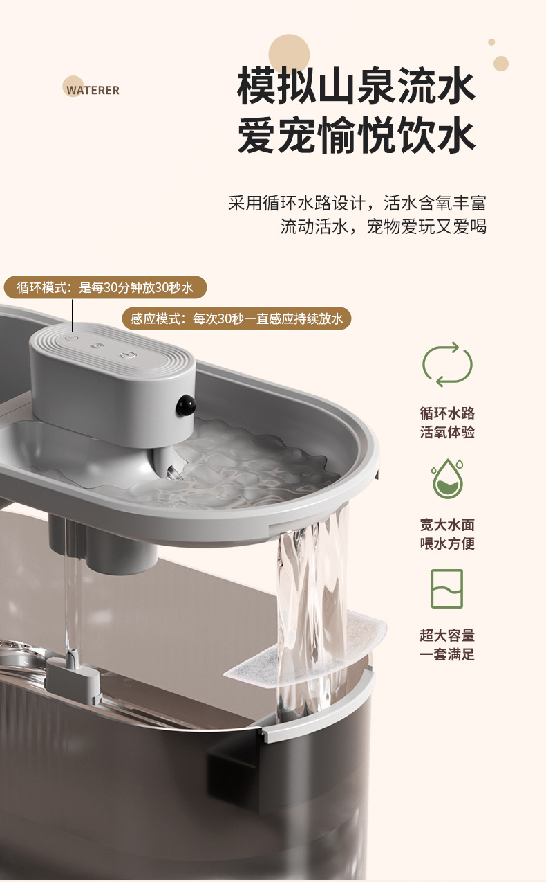 猫咪饮水机智能不插电无线充电自动循环宠物饮水静音过滤