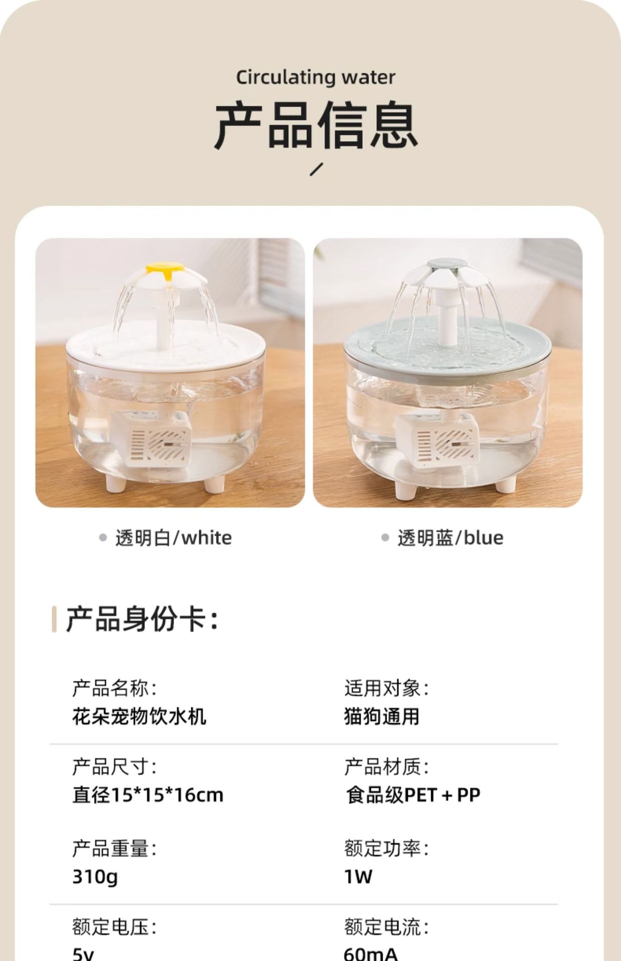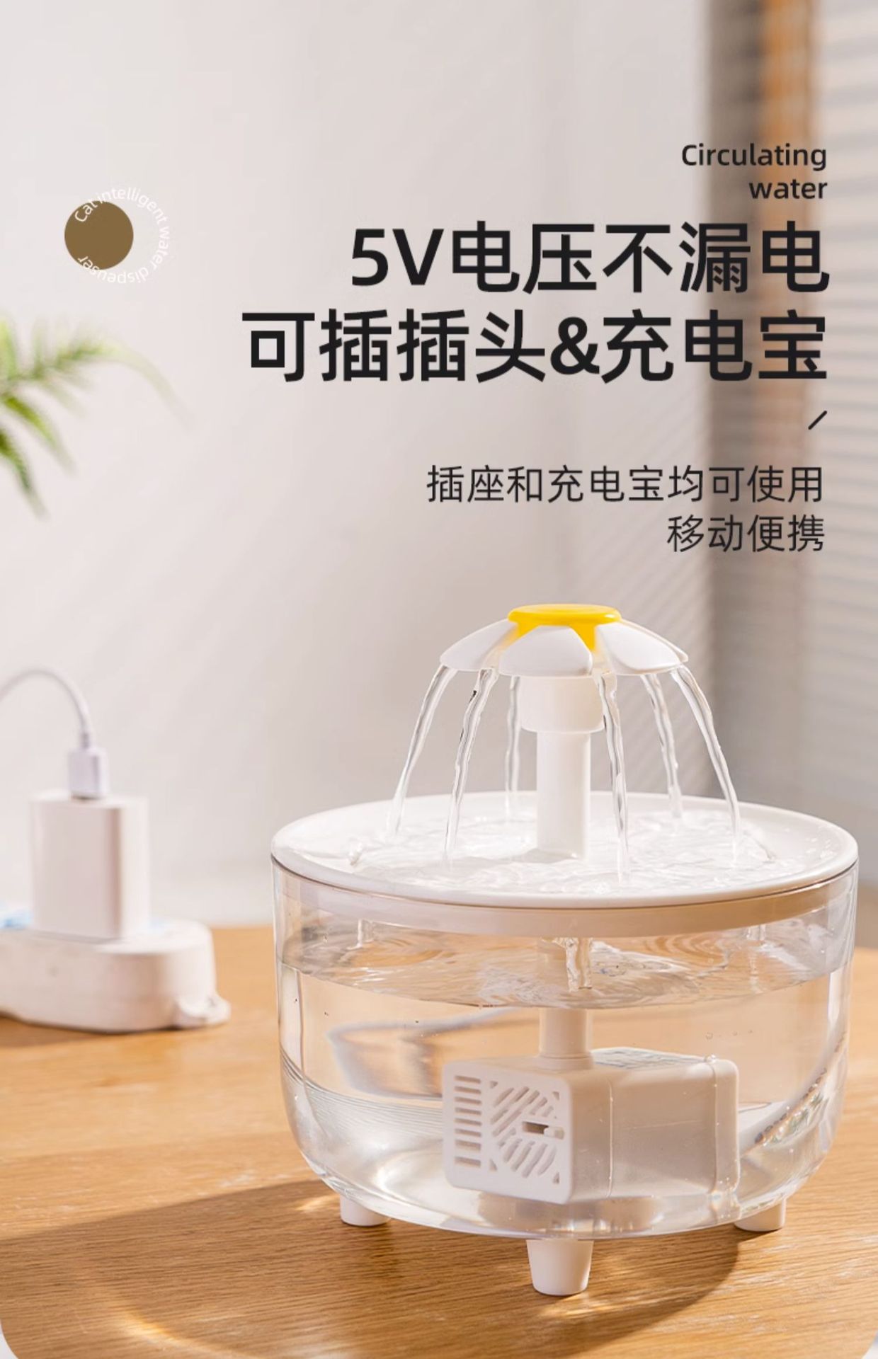 宠物饮水机自动循环夏季过滤活水大容量猫咪花朵喷泉净水器