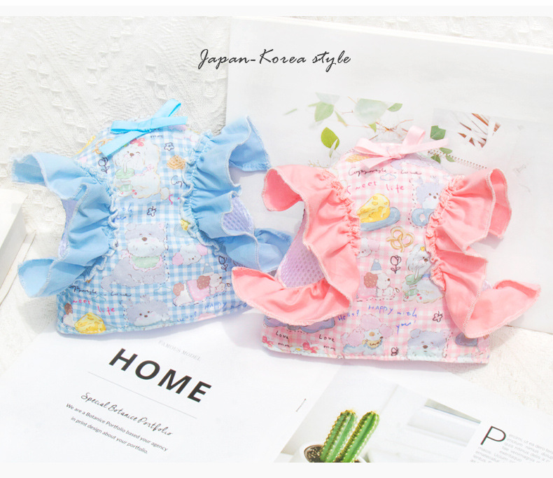 春夏季轻薄镂空条纹透气宠物背心可牵引小熊服装狗狗猫咪两脚衣服