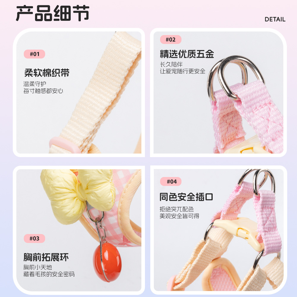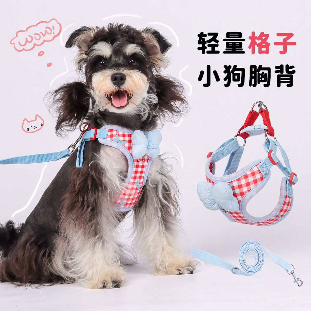 宠物牵引绳蝴蝶结狗狗胸背格子韩系小狗胸背带狗绳防爆冲