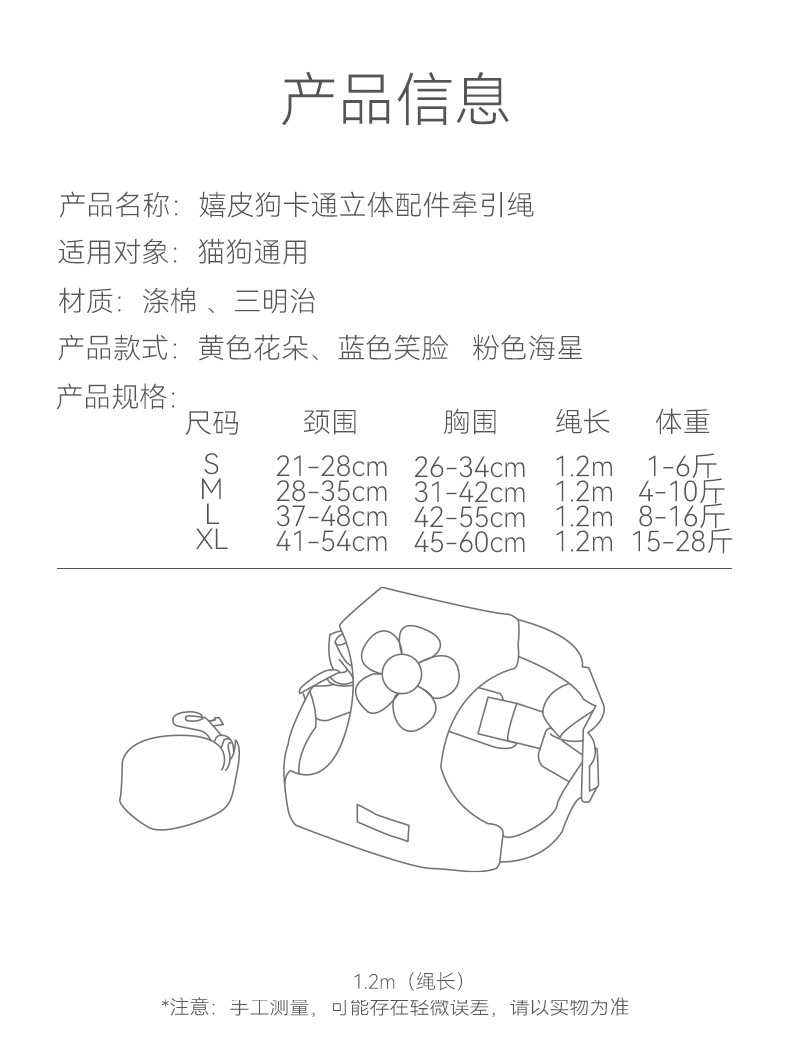 宠物背心牵引绳狗狗卡通立体配件泰迪遛狗绳子猫咪外出防挣脱胸背