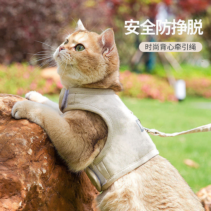 猫咪牵引绳防挣脱外出背心式溜猫绳猫咪防跑绳神器幼猫胸背带