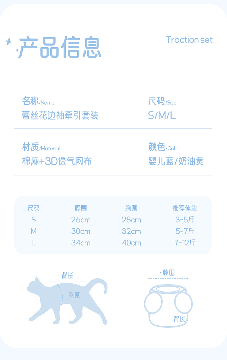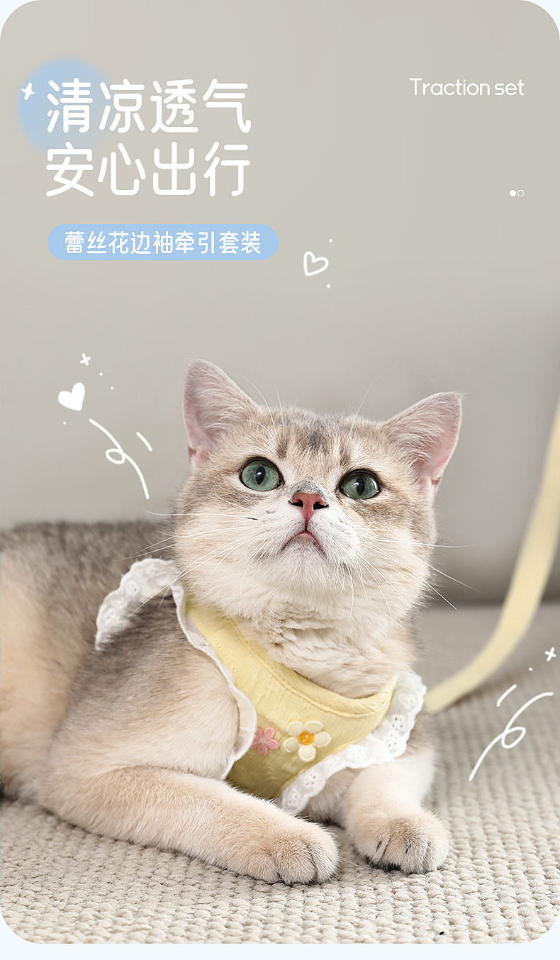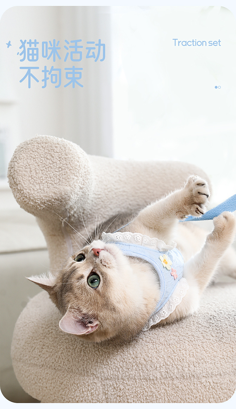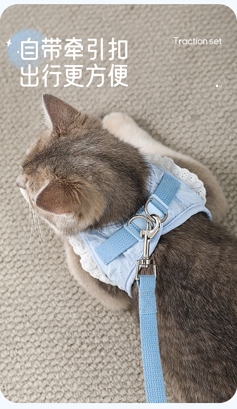 猫咪牵引绳防挣脱外出溜猫背心式背带小型犬小猫猫防丢遛猫绳