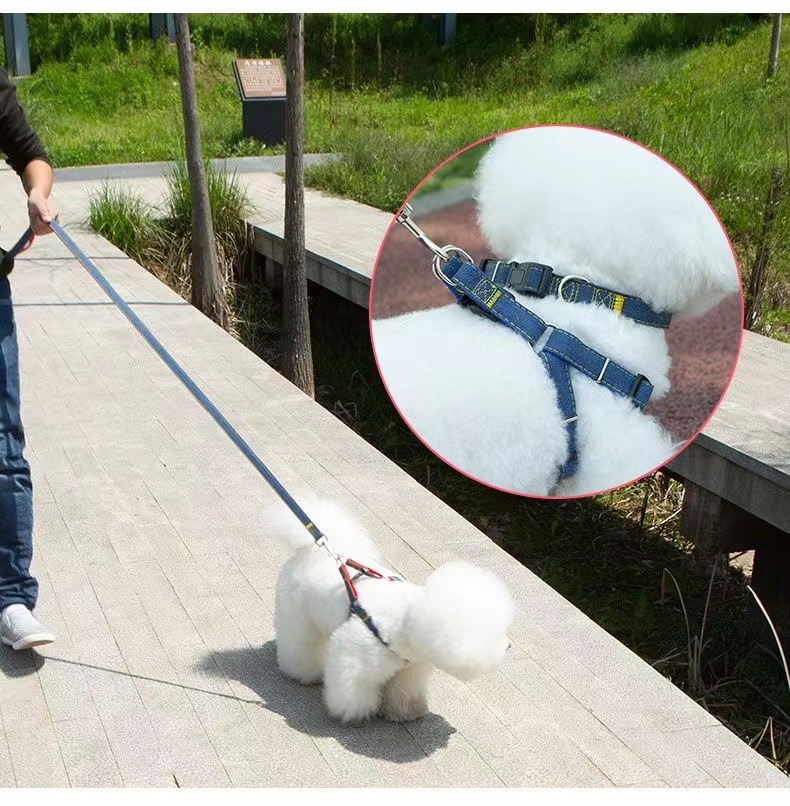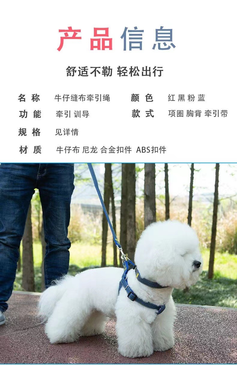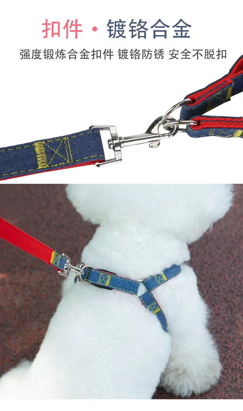 牛仔狗狗牵引绳中小型犬狗链子狗绳子泰迪比熊背心式遛狗绳子胸背
